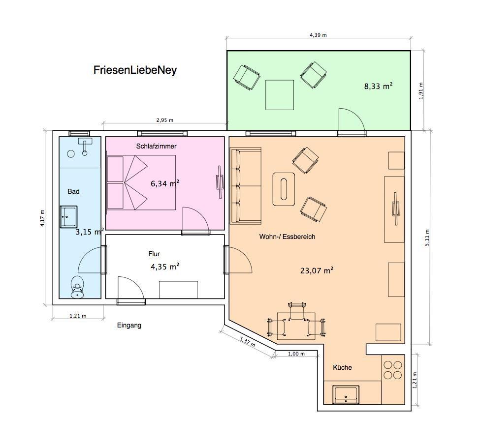 Die Ferienwohnung "FriesenLiebeNEY" liegt in der Winterstraße (Hochparterre). Die Fußgängerzone liegt unmittelbar vor der Haustür und der Weststrand ist nur ca. 300m entfernt. Es sind zahlreiche Restaurants, Cafés und andere Einkaufsmöglichkeiten fußläufig erreichbar. Die Wohnung "FriesenLiebeNEY "ist besonders für Paare oder zwei Reisende geeignet.