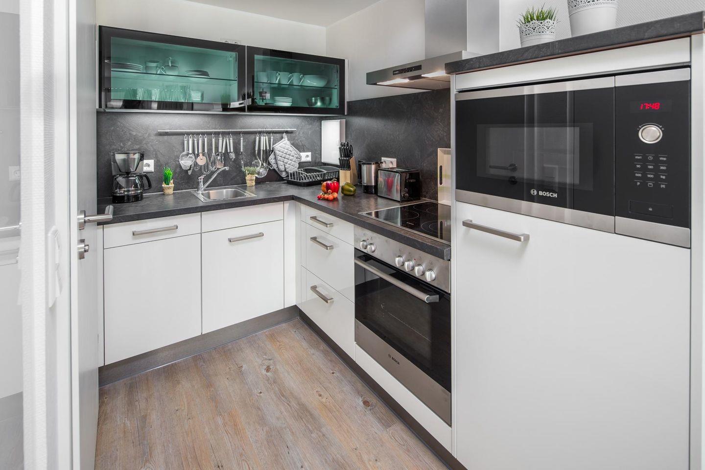 Im Apartmenthaus "Kaiserhof" stehen den Bewohnern eine Waschmaschine und ein Wäschetrockner (beide mit Münzeinwurf) zur Verfügung. Zusätzlich steht eine Sauna bereit, die ebenfalls gegen Münzeinwurf nutzbar ist. Es ist zu beachten, dass das Schwimmbad aufgrund eines technischen Defektes geschlossen ist. Fahrräder können vor dem Haus (Nordseite) oder im Fahrradraum abgestellt werden. Hunde sind in dieser Wohnung nicht erlaubt.