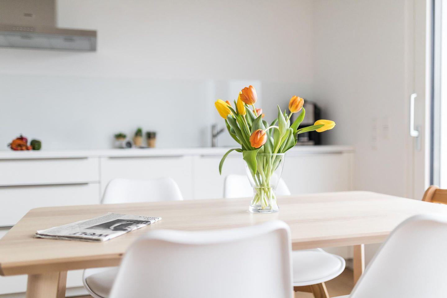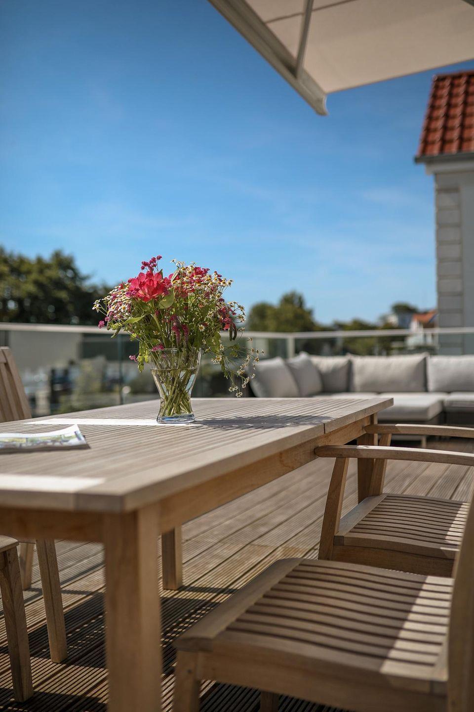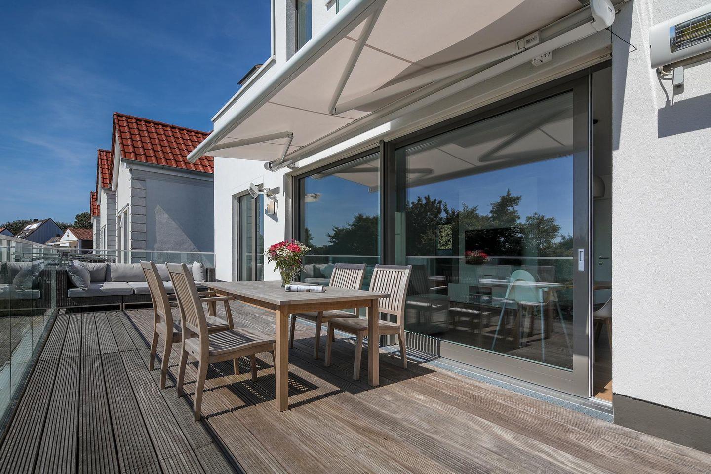 Die moderne Wohnküche mit einem großen Fenster und einer Schiebetür zum 24 qm großen Balkon lässt viel Licht herein. Die Wohnung verfügt über zwei Schlafzimmer. Ein Schlafzimmer ist mit einem Doppelbett eingerichtet. Das zweite Schlafzimmer ist ideal für Kinder ausgestattet und verfügt über ein Hochbett und weitere Details. Im Badezimmer ist eine große Regendusche (80 x 120 cm) eingebaut und auch hier sorgt ein Fenster für natürliches Licht. Der Balkon kann auch von einem der Schlafzimmer aus betreten werden. Für Unterhaltung sorgt ein top moderner 55 Zoll Sony Fernseher mit BlueRay / DVD Player und internetbasiertem Zugang zu Amazon Film, YouTube etc. Die Nutzung von NETFLIX und DAZN ist inklusive! Die moderne Küche ist mit hochwertigen Geräten wie einem großen Miele Kühlschrank mit Tiefkühlfach, einem Miele Ofen mit integrierter Mikrowelle und einem großen Siemens Induktionsherd ausgestattet. Zusätzlich stehen Ihnen eine Nespresso-Maschine, eine Saftpresse, ein Waffeleisen, ein Mixer, ein Sandwich-Toaster und vieles mehr zur Verfügung. Waschmaschine und Wäschetrockner befinden sich im Haus und stehen (für die gemeinschaftliche Nutzung gegen Münzeinwurf) zur Verfügung, was besonders für längere Aufenthalte von Vorteil ist. Hunde sind in dieser Wohnung nicht erlaubt.