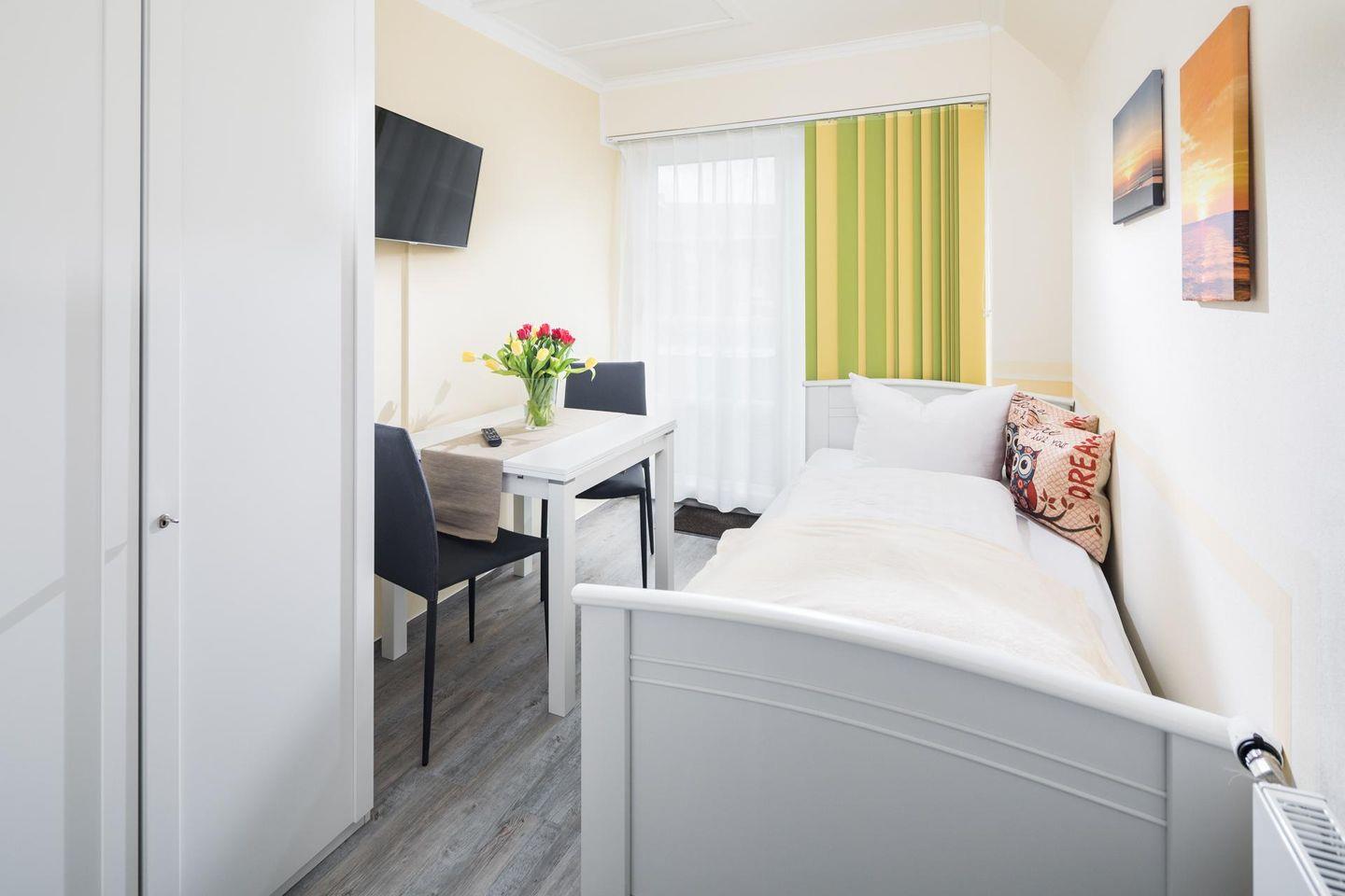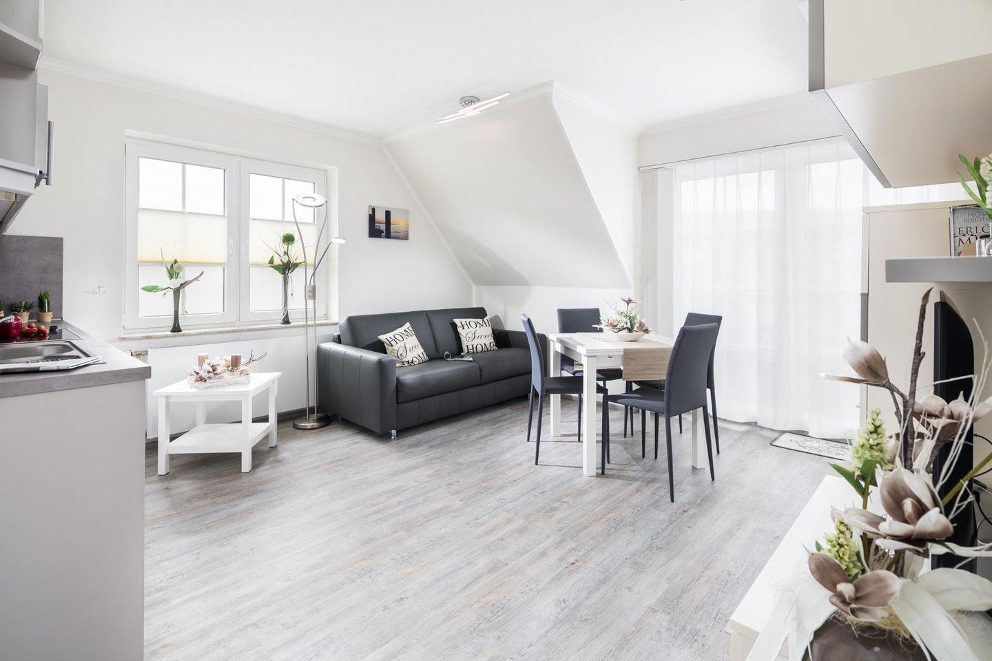 Die Ferienwohnung wurde komplett renoviert und bietet nun eine zeitgemäße Innenausstattung. Die Wohnung verfügt über zwei Schlafzimmer, eines mit einem Doppelbett und eines mit einem Einzelbett. Das Wohnzimmer ist mit einer Schlafcouch für eine weitere Person ausgestattet und geht in eine moderne Küche über. Ein Highlight der Wohnung ist der Süd/Westbalkon. Waschmaschine und Wäschetrockner befinden sich im Haus und stehen (für die gemeinschaftliche Nutzung ggfs. gegen Gebühr) zur Verfügung, was besonders für längere Aufenthalte von Vorteil ist. Vor dem Haus gibt es 1 Stellplatz für diese Wohnung.