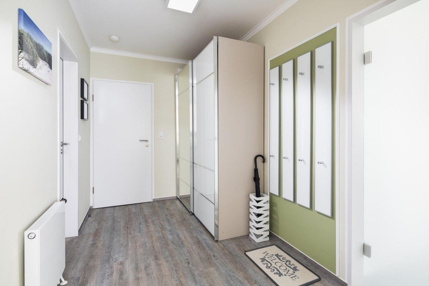 Die Ferienwohnung "Kiebitz" liegt im Passatweg im Haus "Passatweg", im ersten Obergeschoss. Die Wohnung liegt zwischen dem Fährhafen und dem Inselkern. Der Weststrand und der Inselkern sind nur einen kurzen Spaziergang entfernt.