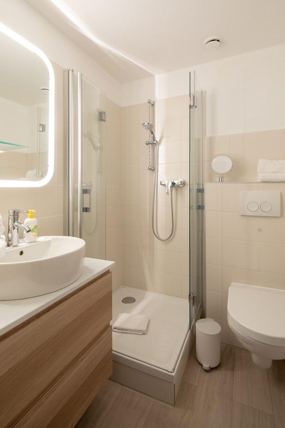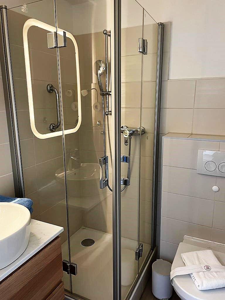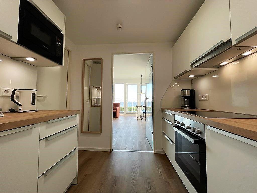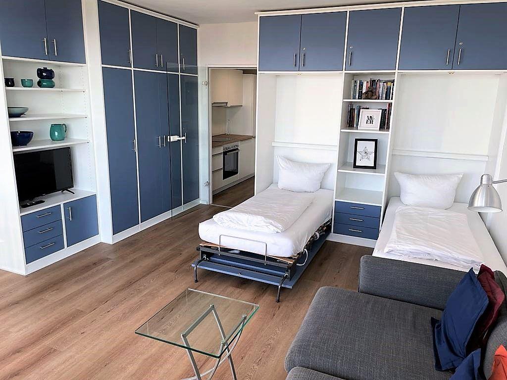 Die Wohnung ist mit zwei separaten Schrankbetten ausgestattet, die jeweils eine Größe von 90x200 cm haben. Die Schrankbetten, die sich tagsüber unauffällig verstauen lassen, sorgen für genug Bewegungsfreiheit innerhalb der Wohnung. Der Vorraum, der auch als Flur und Küche dient, wurde komplett saniert und mit einer vollwertigen Einbauküche ausgestattet. Das Badezimmer der Wohnung ist mit einer Dusche, einem WC und einem Handwaschbecken ausgestattet. Im Apartmenthaus "Kaiserhof" stehen den Bewohnern eine Waschmaschine und ein Wäschetrockner (beide mit Münzeinwurf) zur Verfügung. Zusätzlich steht eine Sauna bereit, die ebenfalls gegen Münzeinwurf nutzbar ist. Es ist zu beachten, dass das Schwimmbad aufgrund eines technischen Defektes geschlossen ist. Fahrräder können vor dem Haus (Nordseite) oder im Fahrradraum abgestellt werden. Hunde sind in dieser Wohnung nicht erlaubt.
