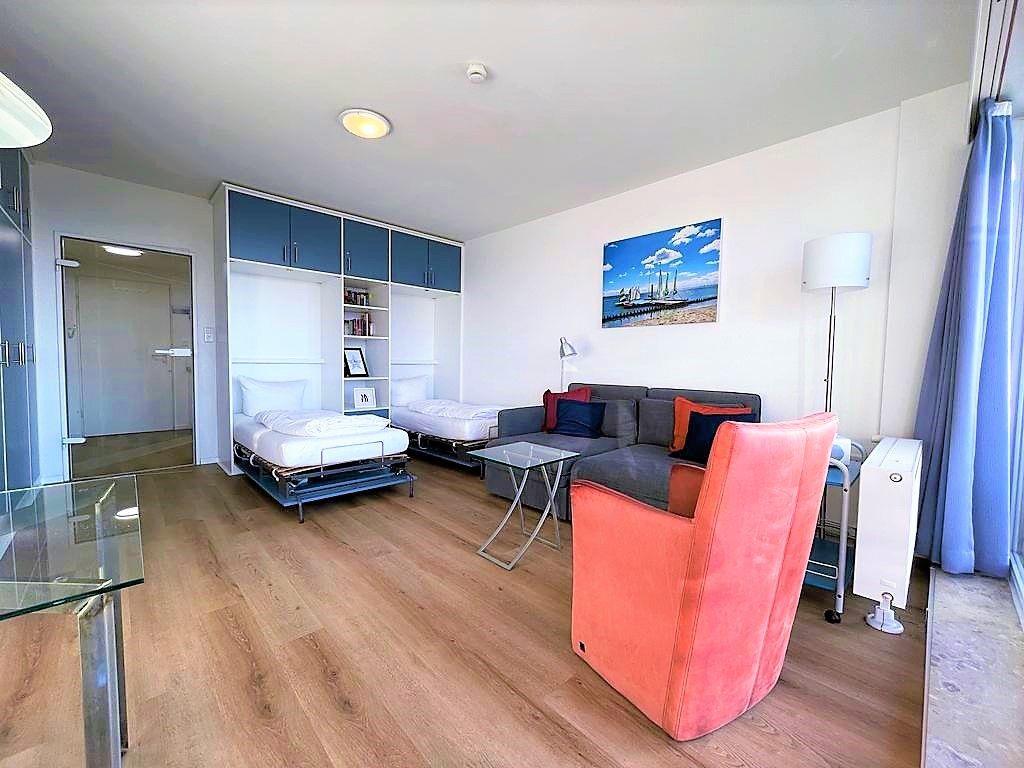 Die Ferienwohnung "Kaiserhof 04" ist ein 1-Raum-Apartment, das sich im ersten Stock des Apartmenthauses "Kaiserhof" befindet. Die Wohnung bietet einen direkten Blick auf das Meer (Balkon). Anfang 2023 wurde die Wohnung renoviert und modernisiert. Die Wohnung bietet Platz für bis zu 2 Personen.