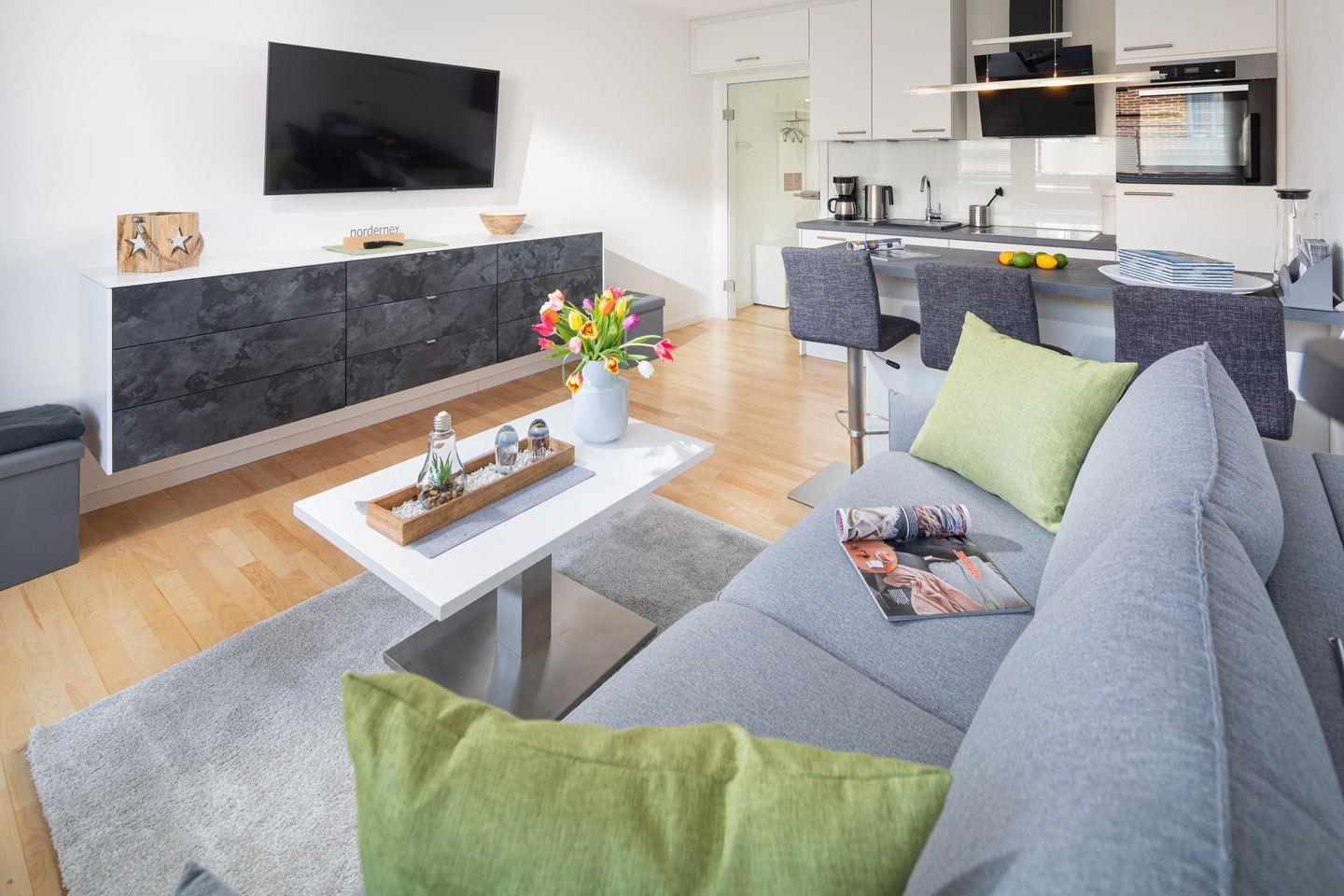 Das Haus Iderhoff befindet sich am Onnen-Visser-Platz, hier ist es ruhig und nur wenige Meter von Strand und Surfcafé entfernt. Die "Lüttje Liebe" ist ein Schmuckstück - in freundlichen Farben modern und gemütlich eingerichtet"