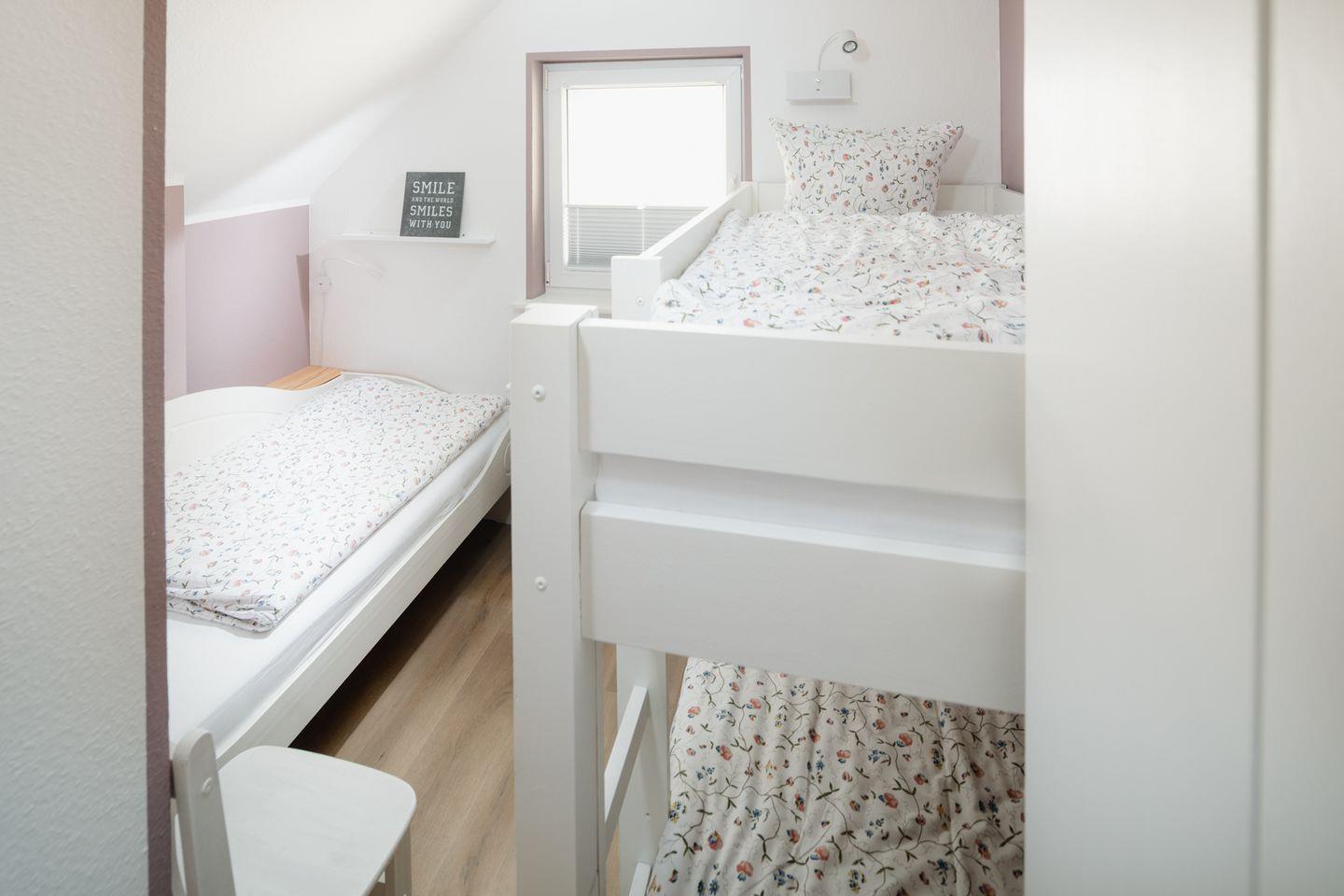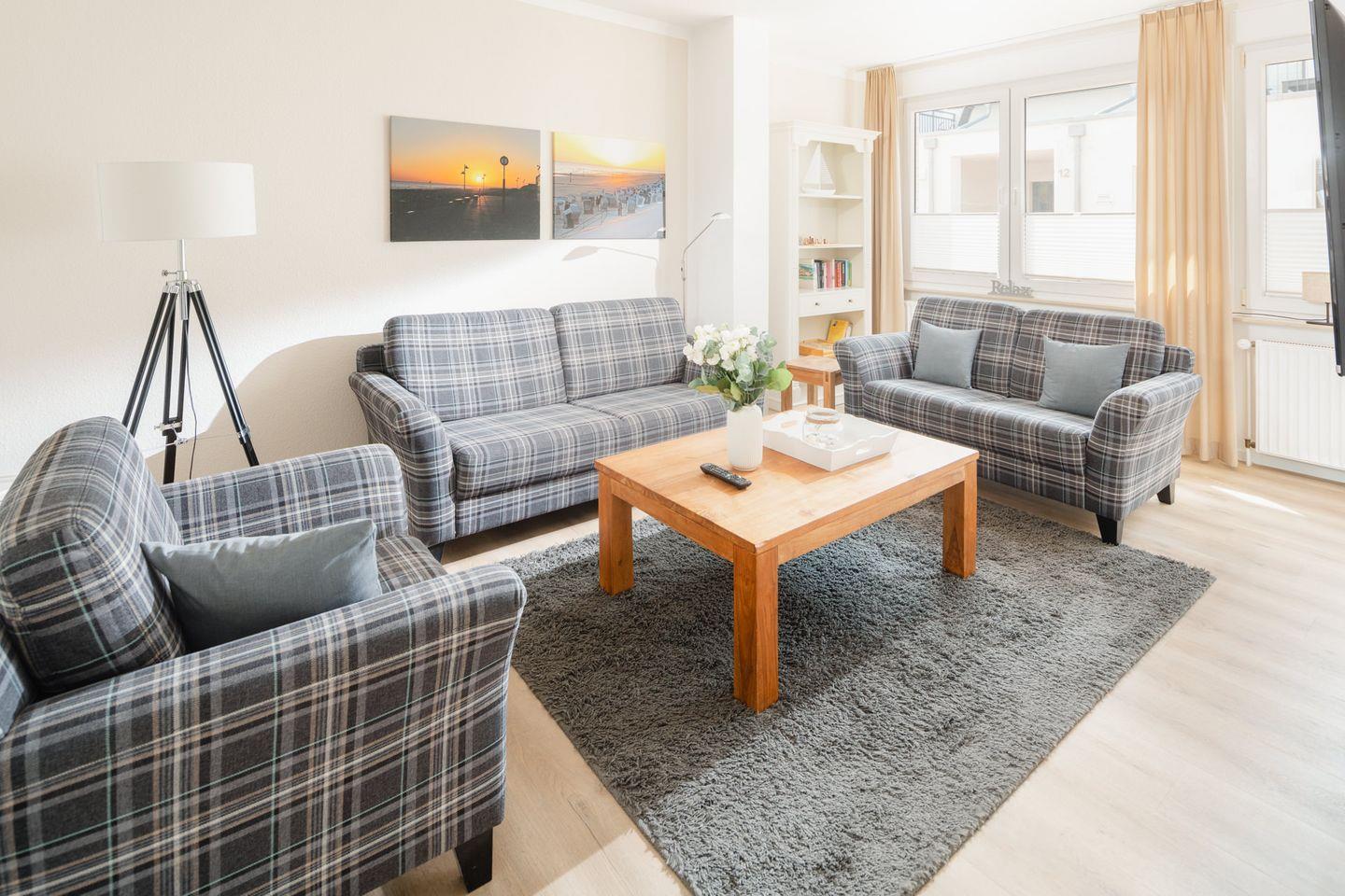 Die Wohnung verfügt über zwei Schlafzimmer, eines mit einem Doppelbett und das andere mit einem Etagenbett und einem Einzelbett. Das Badezimmer, eine separate, sehr gut ausgestattete Küche sowie ein Wohnzimmer mit separatem Esszimmer schließen das Raumangebot ab. Ein Highlight der Wohnung ist die Terrasse. Dank der Erdgeschosslage ist alles stufenlos erreichbar, was komfortabel ist. Haustiere sind in dieser Wohnung nicht erlaubt.
