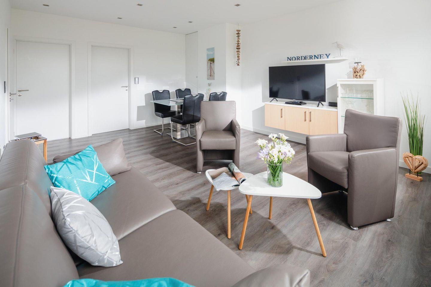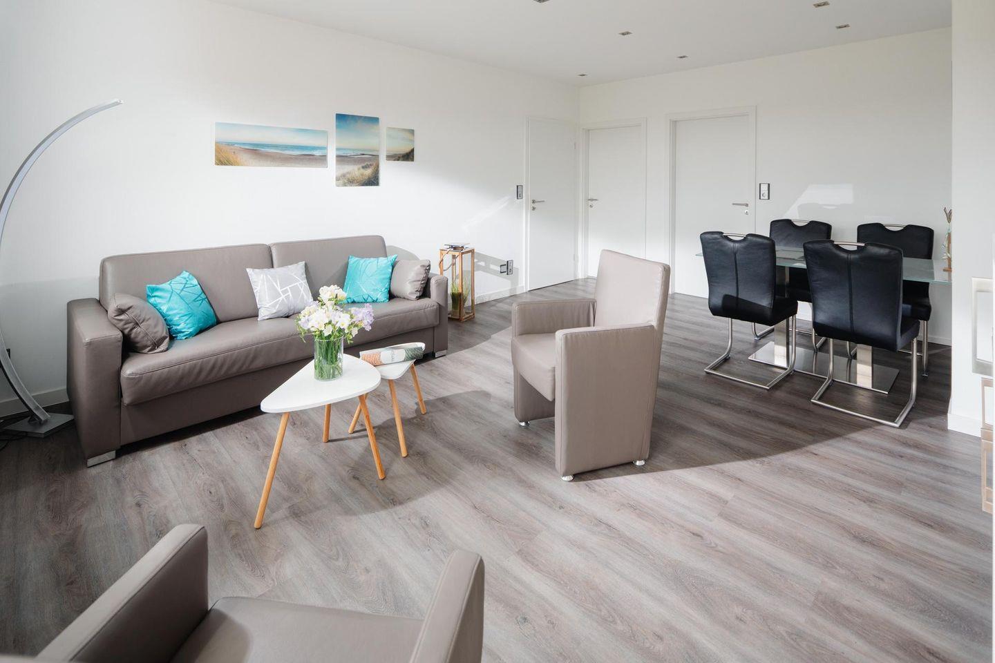Die Wohnung wurde komplett renoviert und mit modernen, hochwertigen Möbeln ausgestattet. Sie verfügt über ein Schlafzimmer mit Doppelbett sowie ein Wohnzimmer mit einer bequemen Schlafcouch (mit Lattenrost, Breite 180 cm). Zudem gibt es eine separate Küche. Ein besonderes Highlight ist die 30 Quadratmeter große Terrasse (Süd-West-Ausrichtung) des Hauses, die von den Gästen der Wohnungen "Dorie" und "Nemo" genutzt werden kann. Waschmaschine und Wäschetrockner stehen zur gemeinschaftlichen Nutzung zur Verfügung. Direkt am Haus befinden sich öffentliche, kostenpflichtige Parkplätze. Hunde sind in dieser Wohnung nicht erlaubt.