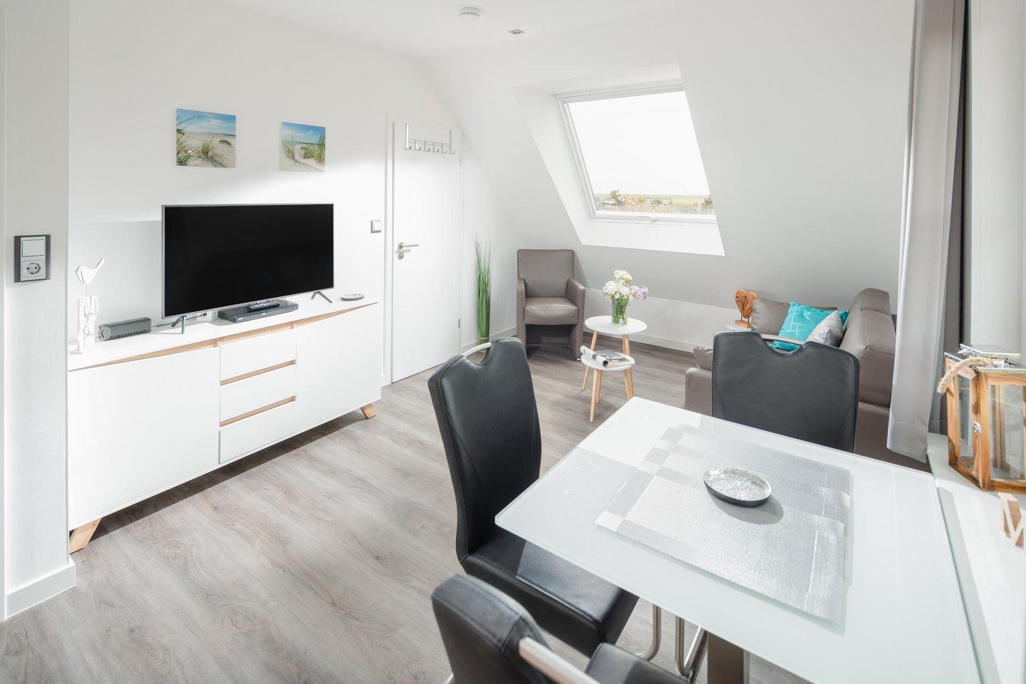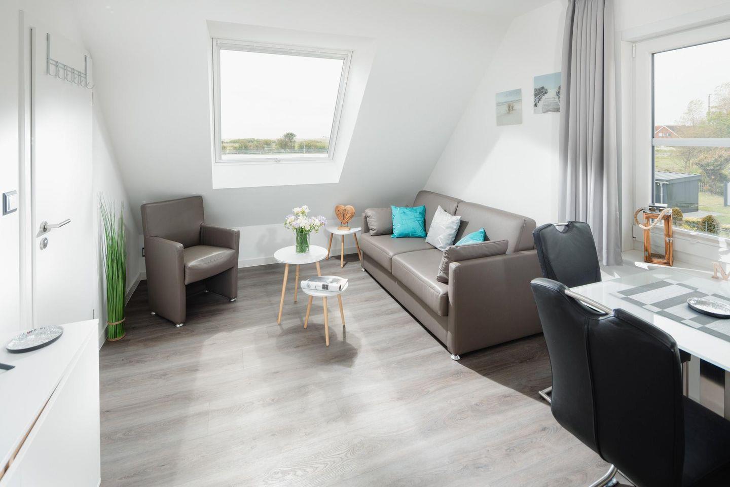 Die Ferienwohnung "Up Süderdün Nemo" befindet sich in der Straße "up Süderdün", die sich zwischen dem Fährhafen und der Innenstadt befindet. Die Wohnung "Nemo" liegt im Obergeschoss und bietet einen Blick über die Pferdewiesen und den Deich hinweg auf das nahe Meer. Der Weststrand ist ebenfalls nicht weit entfernt. Die Wohnung bietet Platz für bis zu drei Personen.