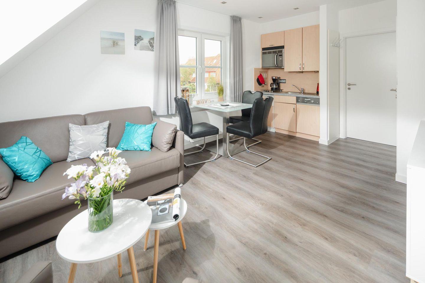 Obwohl die Wohnung "Nemo" etwas kleiner als ihre Schwesterwohnung "Dorie" ist, bietet sie dennoch ausreichend Platz und Komfort. Sie verfügt über ein separates Schlafzimmer sowie eine bequeme Schlafcouch (mit Lattenrost, Breite 160 cm) im Wohnzimmer. Die Wohnung wurde komplett renoviert und mit modernen, hochwertigen Möbeln ausgestattet. Ein besonderes Highlight ist die 30 Quadratmeter große Terrasse (Süd-West-Ausrichtung) des Hauses, die von den Gästen der Wohnungen "Dorie" und "Nemo" genutzt werden kann. Waschmaschine und Wäschetrockner stehen zur gemeinschaftlichen Nutzung zur Verfügung. Direkt am Haus befinden sich öffentliche, kostenpflichtige Parkplätze. Hunde sind in dieser Wohnung nicht erlaubt.
