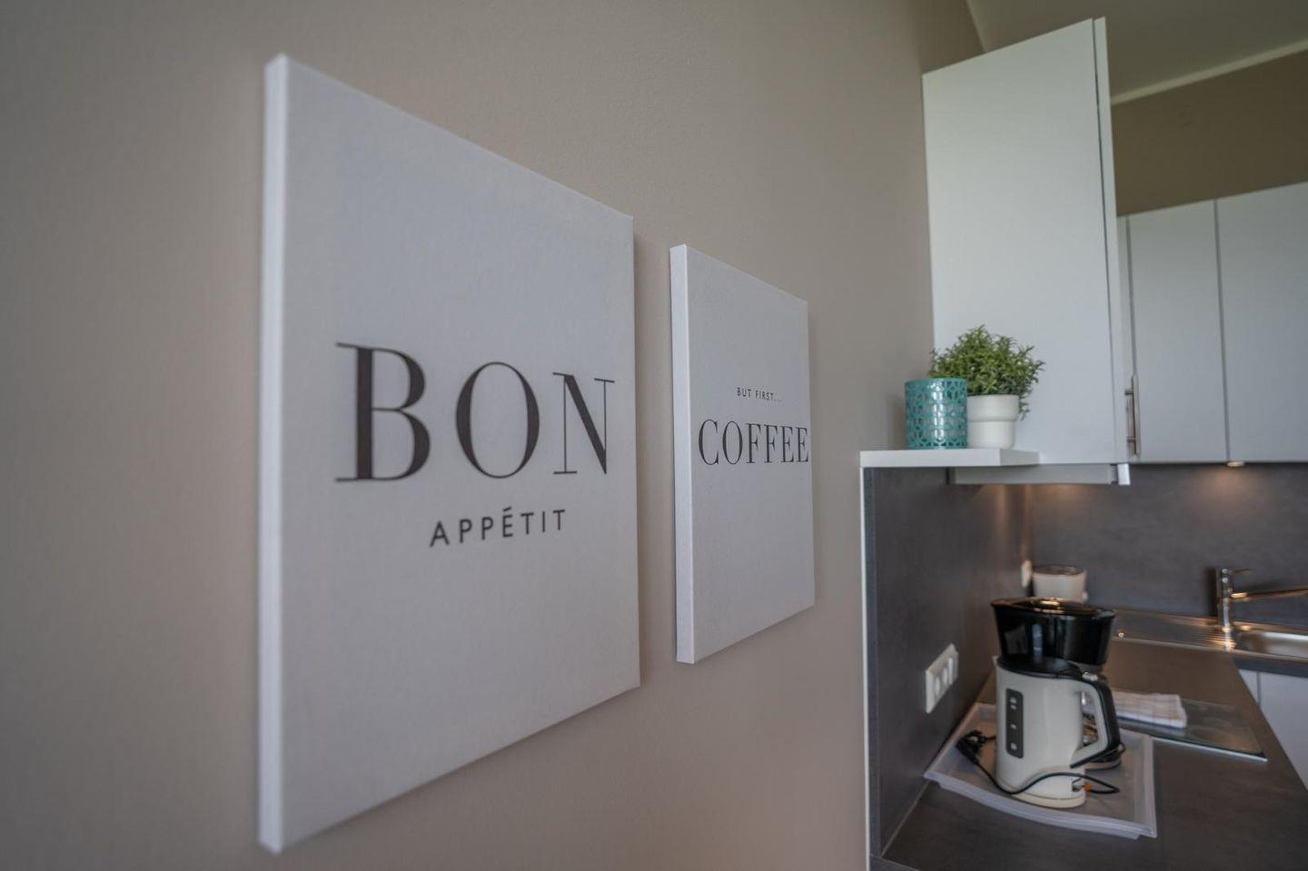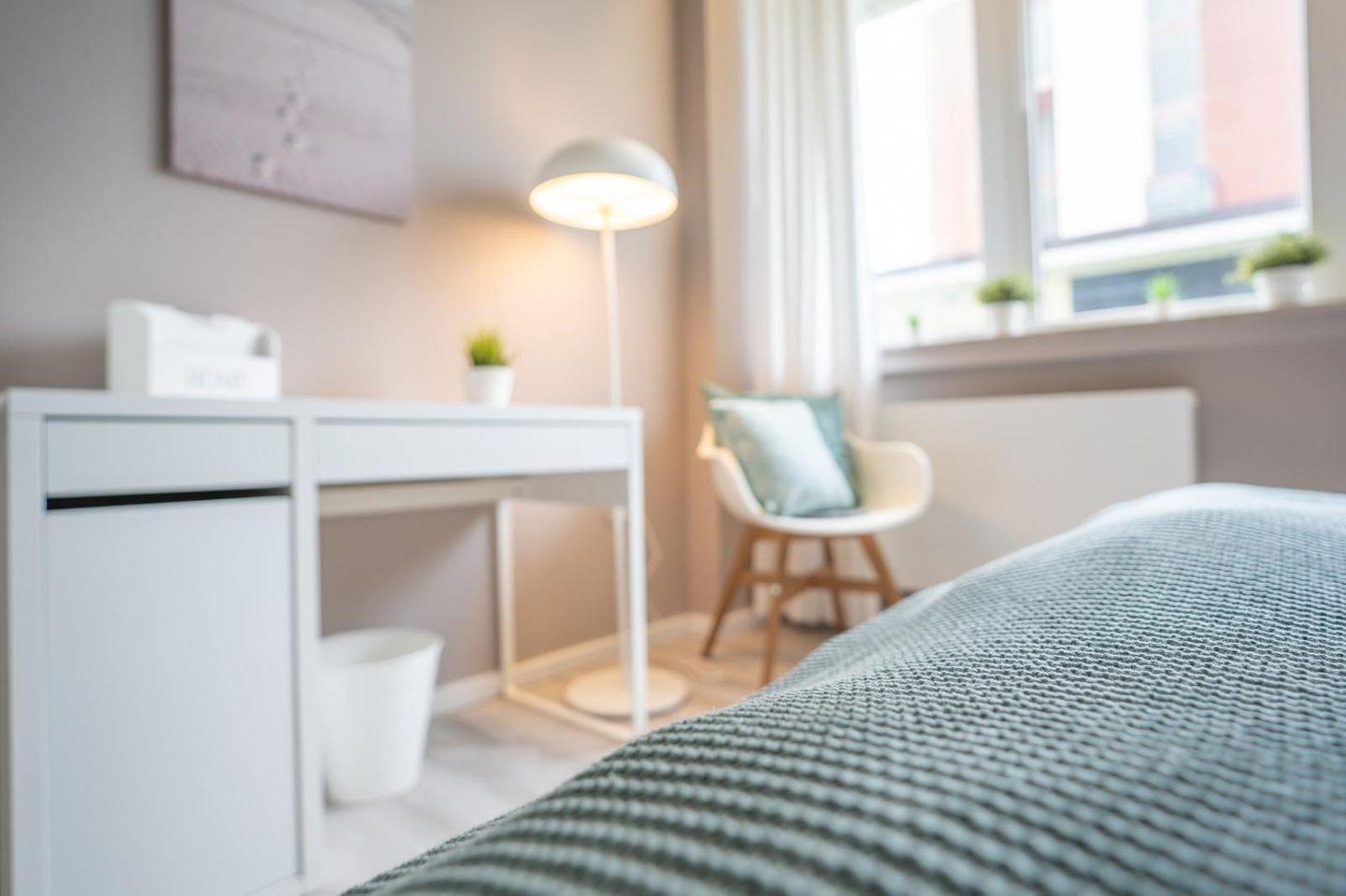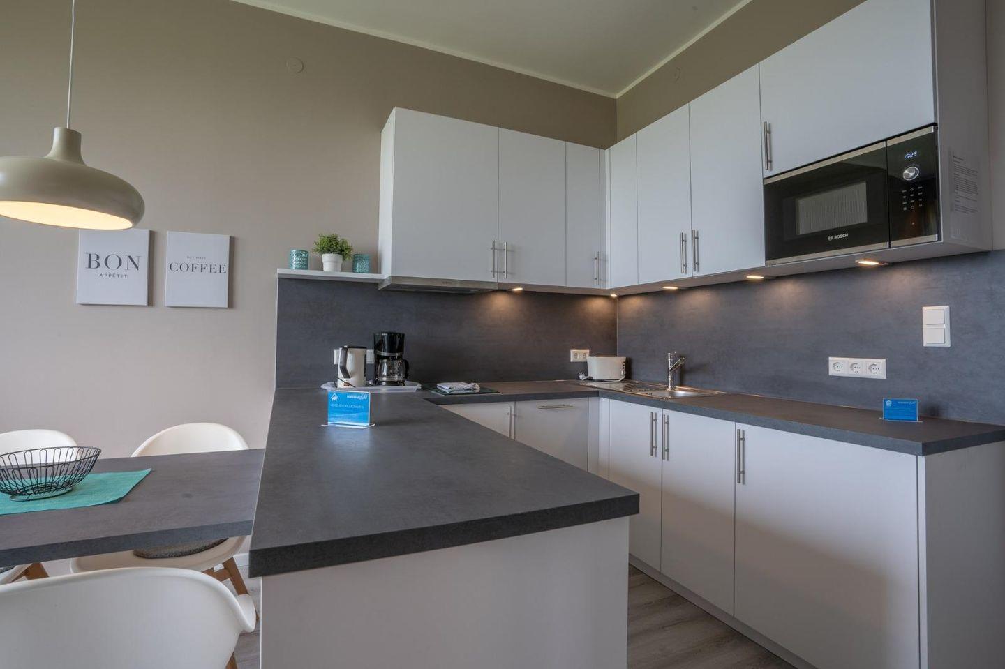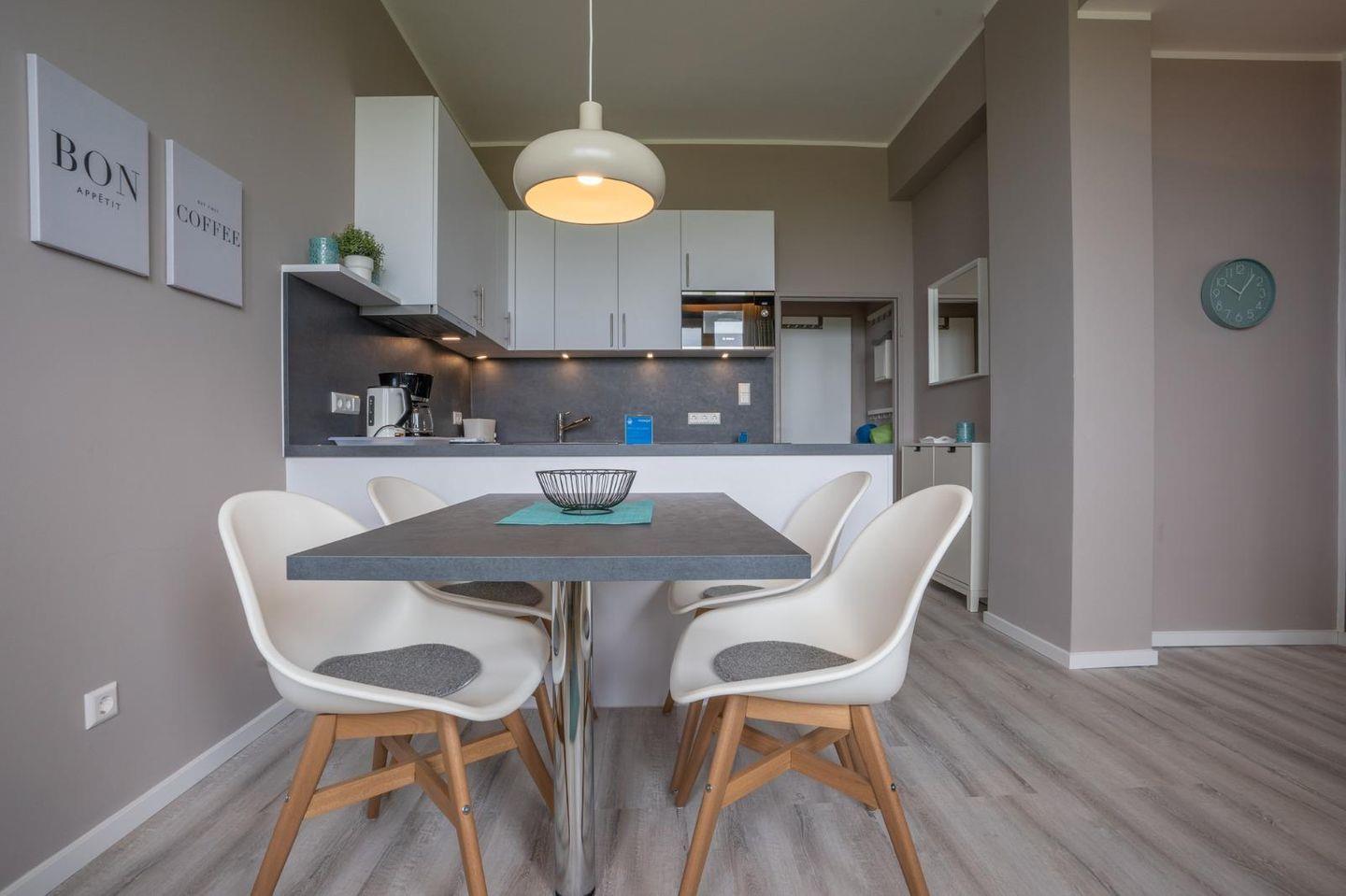 Die Wohnung wurde hell und mit Naturfarben eingerichtet. Das Schlafzimmer wurde mit einem Doppelbett (Breite 1,80m) ausgestattet. Im Wohnzimmer befindet sich eine Schlafcouch (ausgezogen 1,40m Breite). Dadurch bietet die Wohnung Schlafmöglichkeiten für insgesamt bis zu 4 Personen. Im Apartmenthaus "Kaiserhof" stehen den Bewohnern eine Waschmaschine und ein Wäschetrockner (beide mit Münzeinwurf) zur Verfügung. Zusätzlich steht eine Sauna bereit, die ebenfalls gegen Münzeinwurf nutzbar ist. Es ist zu beachten, dass das Schwimmbad aufgrund eines technischen Defektes geschlossen ist. Fahrräder können vor dem Haus (Nordseite) oder im Fahrradraum abgestellt werden. Hunde sind in dieser Wohnung nicht erlaubt.