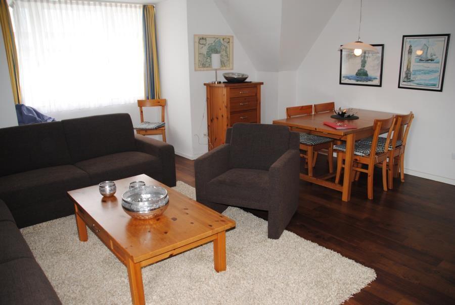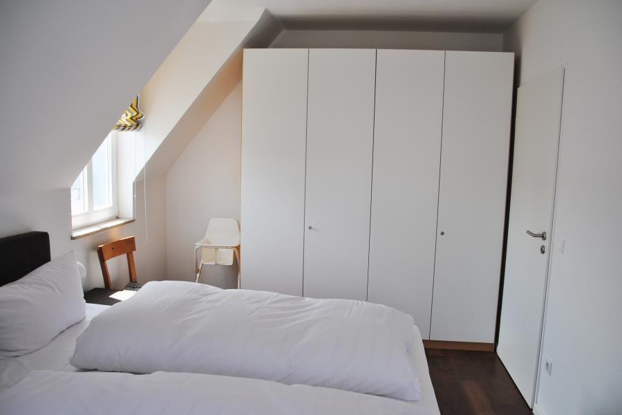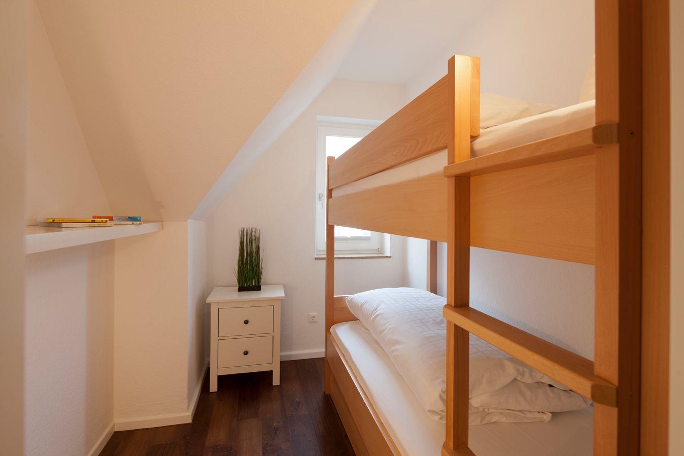Das großzügige 3-Raum-Appartement (Eingang B, Bogenstraße) in der 2. Etage verfügt über ein separates Schlafzimmer mit Doppelbett (Boxspringbett), ein separates Schlafzimmer mit Etagenbett, Wohn-Schlafraum (Schlafsofa) mit Küchenzeile, Diele, Dusche/WC (Waschmaschine & Trockner kostenfrei nutzbar), Gäste-WC, Kabel-TV, Radio und CD-Player. Wohnungseigener Parkplatz in der Tiefgarage vorhanden.
