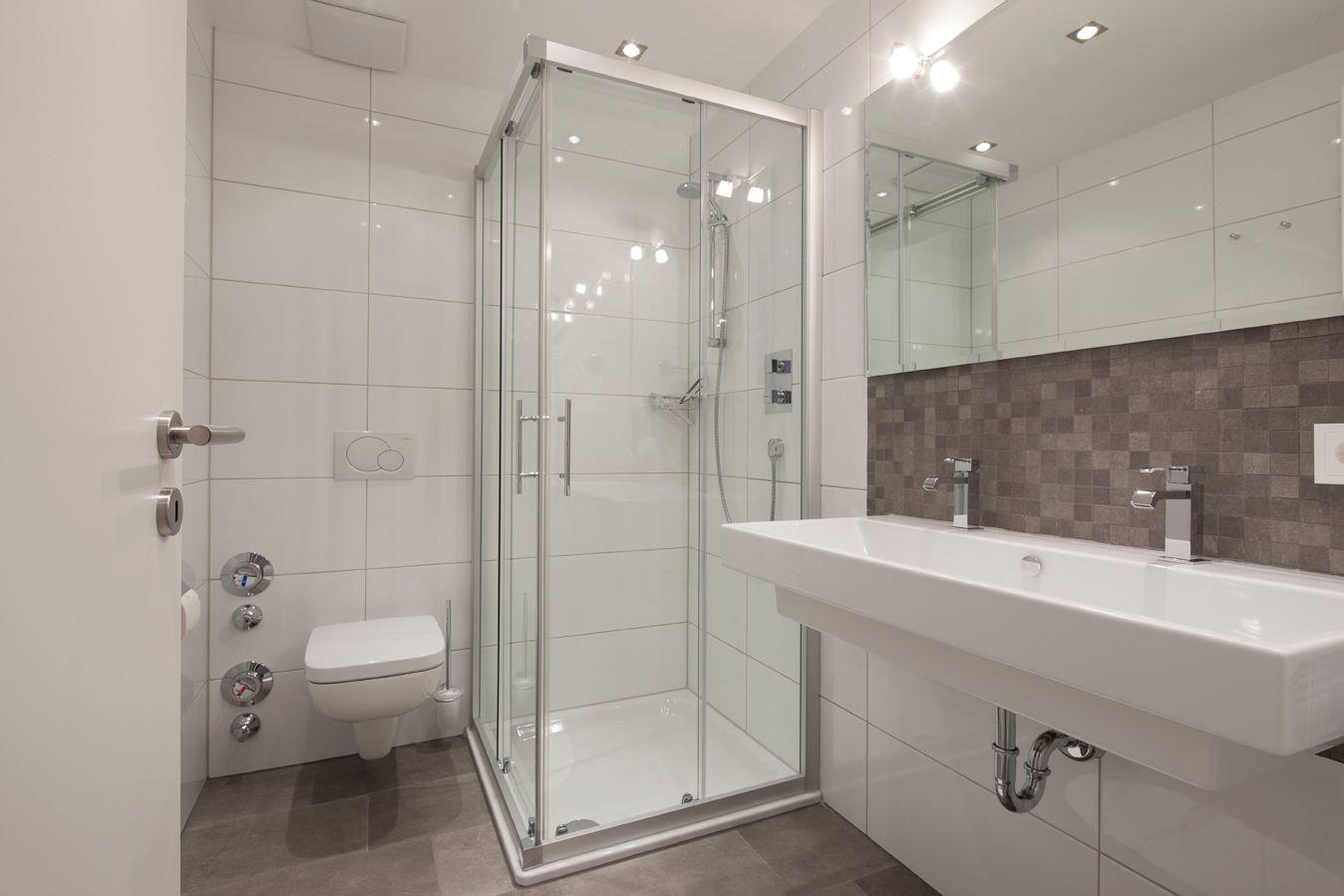 Balkon), Badezimmer mit Dusche/WC mit Waschmaschine und Trockner, Wohnraum mit