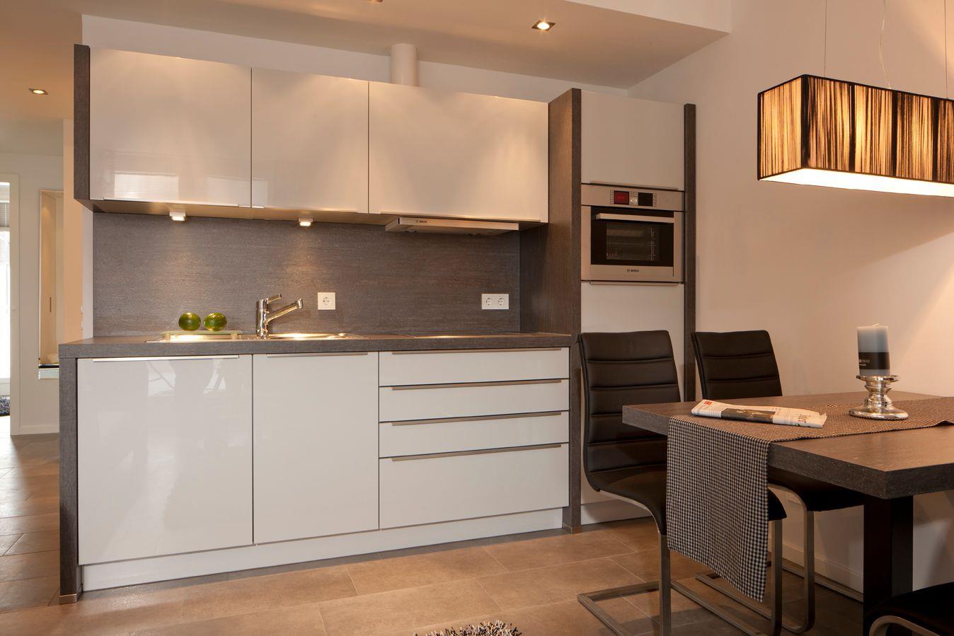 TV (ohne Telefon), Küchenzeile (4-Platten-Herd, Dampfbackofen) und Essecke. Vom