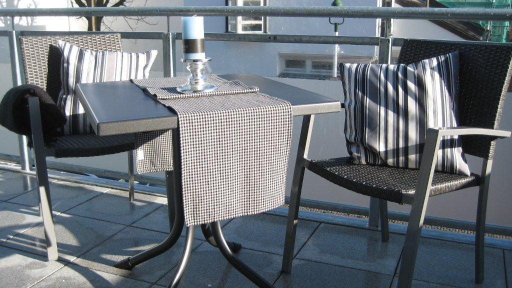 Wohnzimmeraus haben Sie Zugang auf den überdachten Süd-West-Balkon. Ein