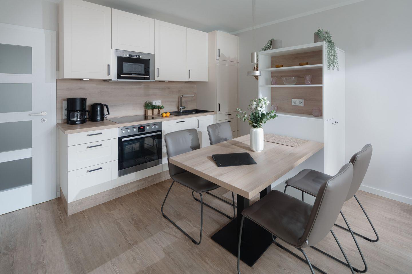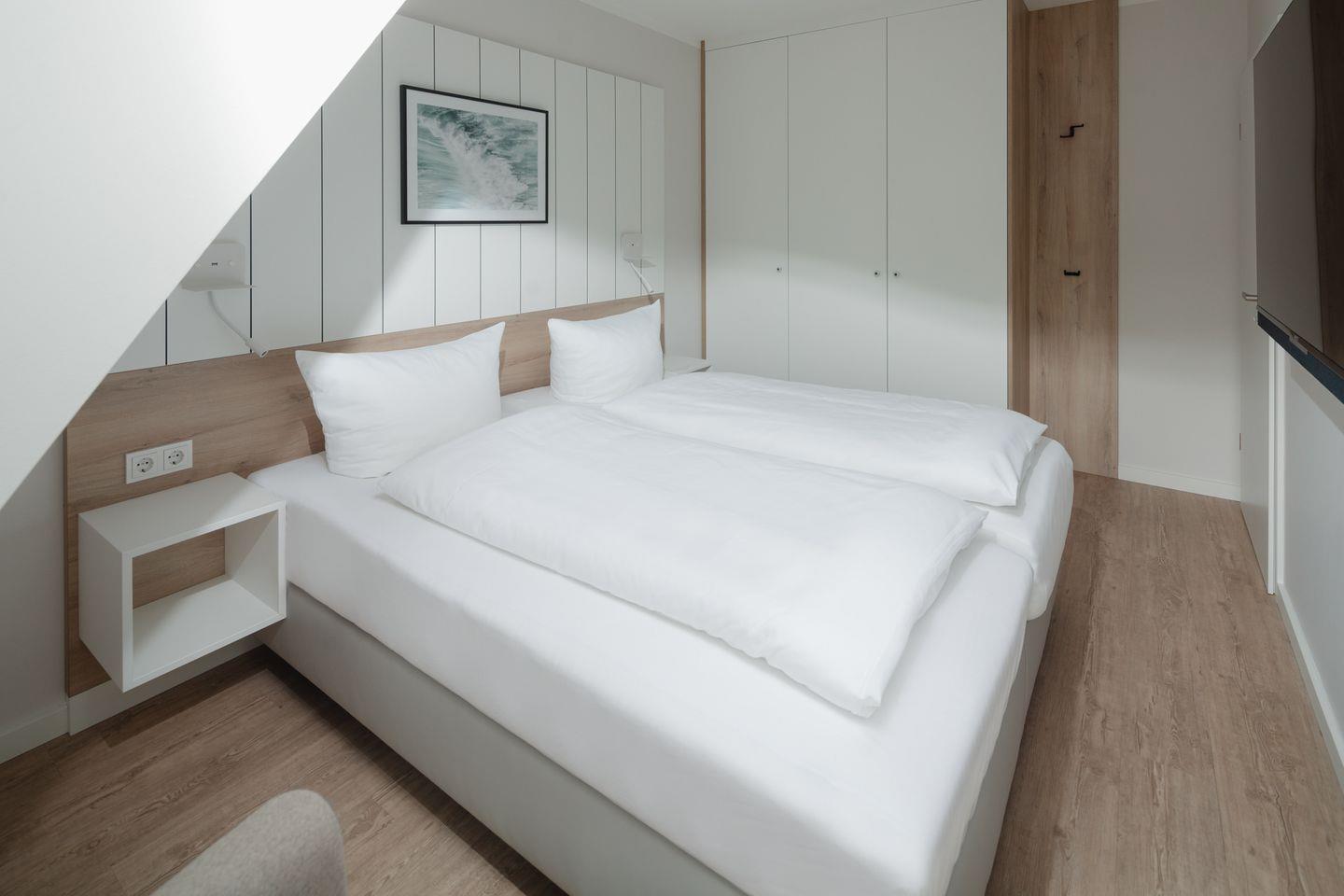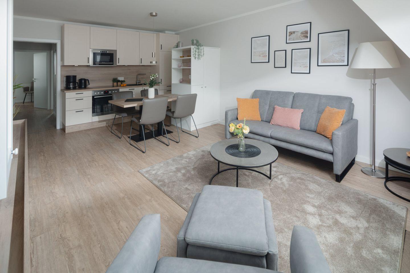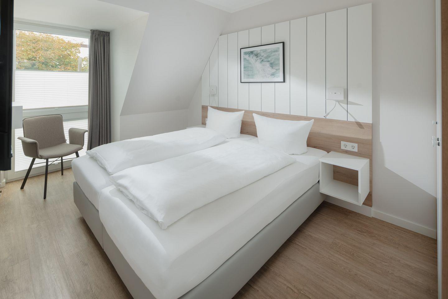 Das neu renovierte (2023) 3-Raum-Appartement im 2. Obergeschoss verfügt über zwei komfortable Schlafzimmer mit je einem Doppelbett, hellen Wohnbereich aus hochwertigen Möbeln (Smart-TV), Küchenzeile mit Essecke sowie Badezimmer mit Dusche/WC. Der Balkon lädt zum entspannen & sonnenbaden ein.