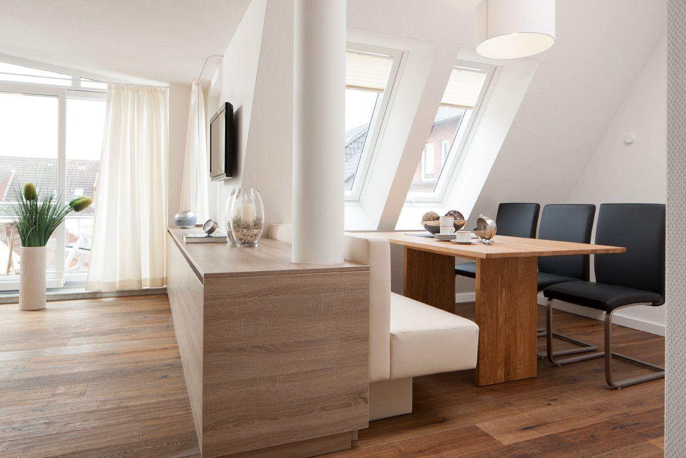Das moderne 2-Zimmer-Appartement im Dachgeschoss verfügt über ein Schlafzimmer mit Doppelbett, einen Wohn- und Schlafraum mit Schlafsofa sowie einen Fernseher (ohne Telefon). Die offene, vollständig ausgestattete Küche verfügt über eine Essecke. Das moderne Badezimmer ist mit Dusche und WC ausgestattet.. Sauna und Fahrstuhl (bis zum 2. OG) im Haus. NICHTRAUCHERWOHNUNG!!!