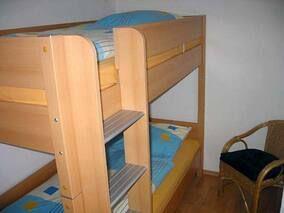 Schlafraum mit Etagenbett, eine separate Dusche, ein separates WC, einen Wohn-/Schlafraum mit Schlafsofa und Küchenzeile, Kabel-TV und Telefon. In der 1. Etage ist ein weiterer Schlafraum mit Doppelbett.