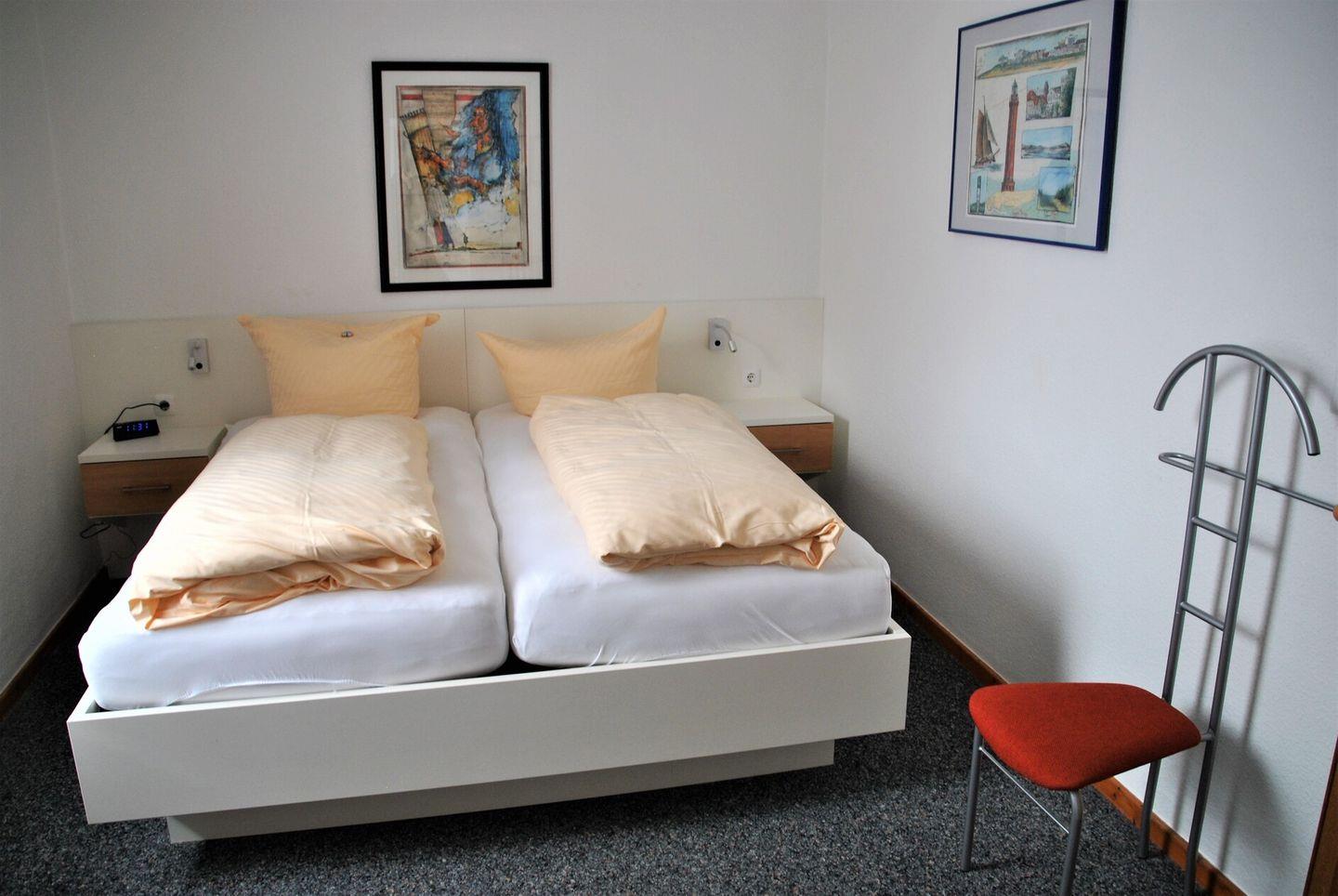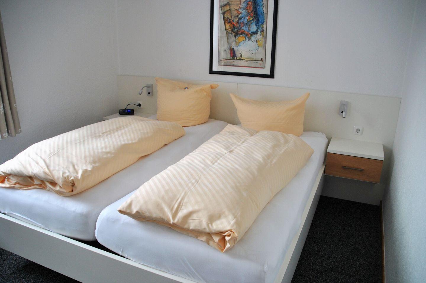 Die Wohnung im 1. OG verfügt über ein separates Schlafzimmer mit Doppellbett, separate Küchenzeile (4-Platten-Herd), Dusche/WC, Diele und Wohn-Schlafraum (Schlafsofa für 1 Person) mit Kabel-TV und Essecke. NICHTRAUCHERWOHNUNG !