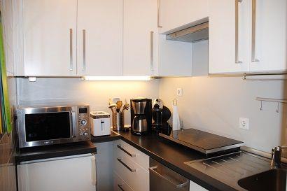 Das Appartement 2 in der 1. Etage verfügt über ein separates Schlafzimmer mit zwei Einzelbetten, Wohnraum mit Küchennische (2-Plattenherd, Spülmaschine,