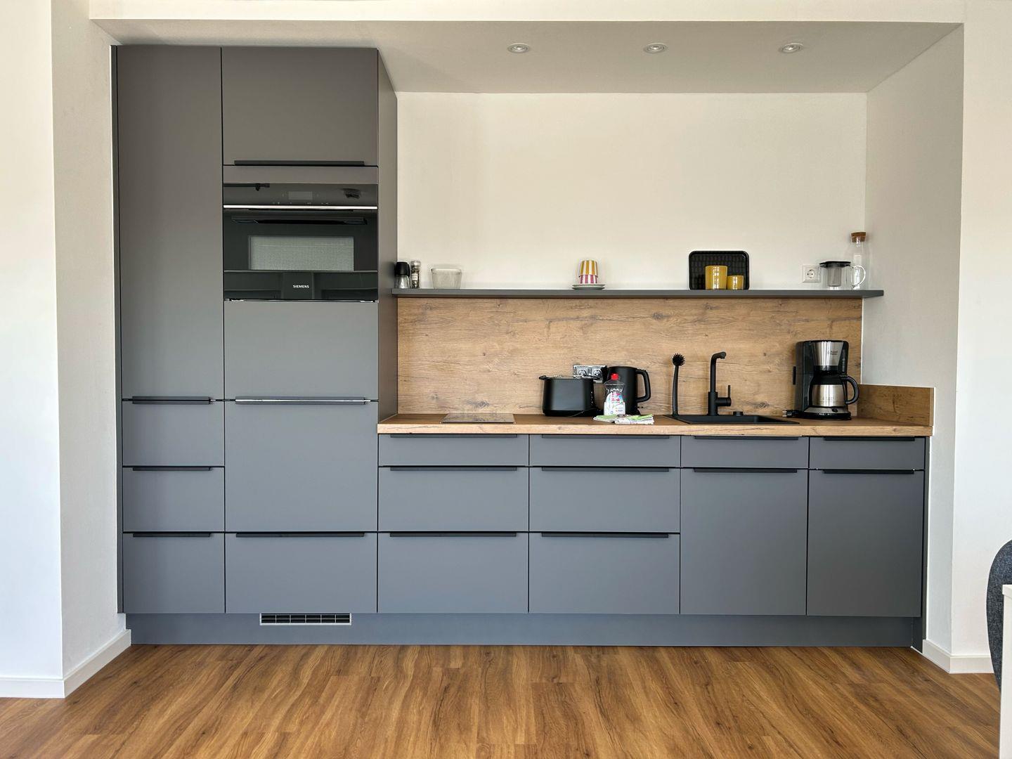 Das Appartement in der 4. Etage verfügt über ein separates Schlafzimmer mit Doppelbett (nur 1,90 m lang), Wohn-Schlafraum, TV und (Schlafsofa) mit Küchenzeile (2-Platten-Herd, Backofen), Diele, Balkon, Badezimmer mit Dusche/WC. NICHTRAUCHERWOHNUNG!