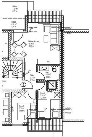ein Badezimmer mit Dusche/WC sowie einen Wohnraum mit TV, Küchenzeile (4-Platten-Herd, Dampfbackofen) und Essecke. Vom Wohnzimmeraus haben Sie Zugang auf den Balkon. Ein Fahrstuhl befindet sich im Haus. Waschmaschine und