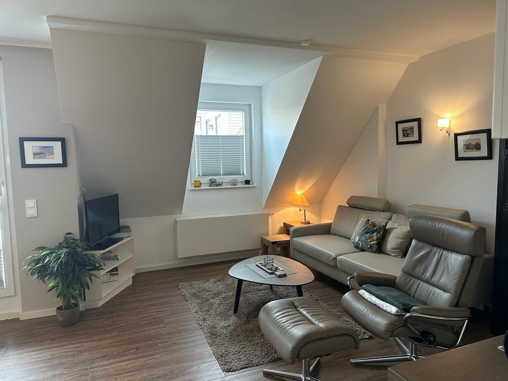 Das moderne Appartement im Dachgeschoss verfügt über ein Schlafzimmer mit Doppelbett, eines mit zwei Einzelbetten (beide Schlafzimmer mit TV),