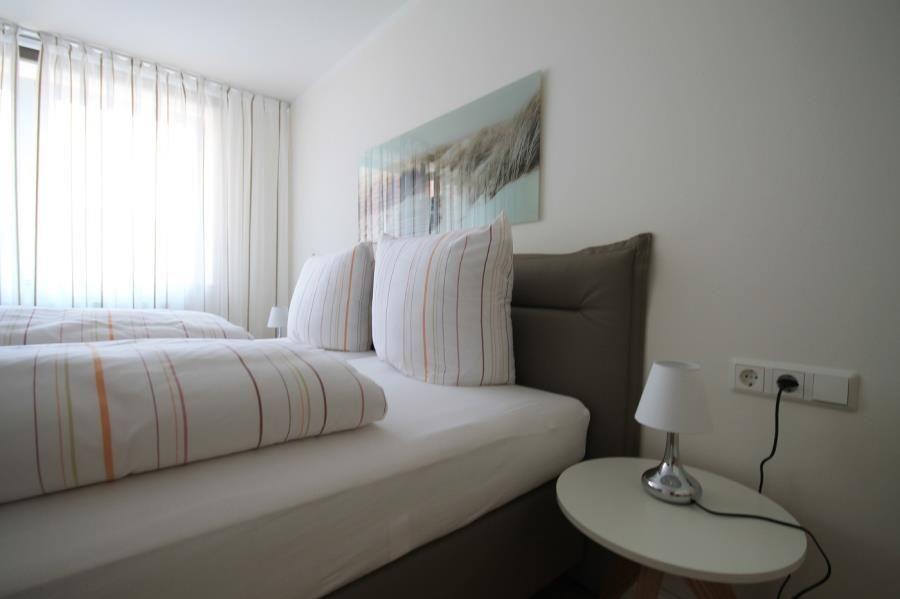 Exklusive, große Ferienwohnung über zwei Etagen. Im Erdgeschoss befindet sich eine Küche mit Essplatz, Kamin, TV und Zugang zum Balkon. Ein Schlafzimmer mit Doppelbett und TV sowie ein Bad mit Dusche/ WC sind vorhanden. Im Untergeschoss befindet sich ein Wohnraum (TV) mit direktem Zugang zur Terrasse sowie zwei Schlafzimmer mit jeweils einem Doppelbett und TV. Dusche/ WC. Das Ferienhaus besticht durch seine idyllische Dünenlage! Ein Parkplatz ist inklusive.