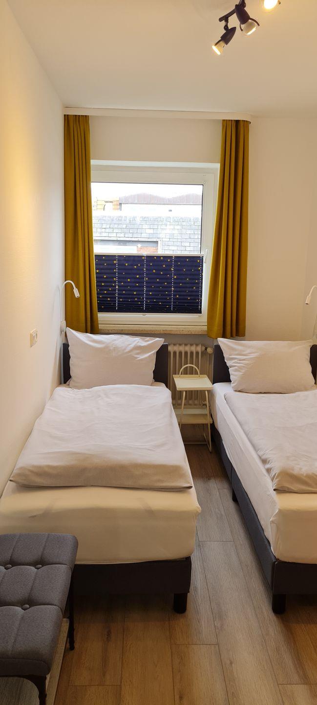 Das Badezimmer verfügt über eine geräumige Dusche sowie eine Waschmaschine und einen Trockner. Die Ferienwohnung mit drei Zimmern befindet sich in einer zentralen, aber ruhigen Seitenstraße.