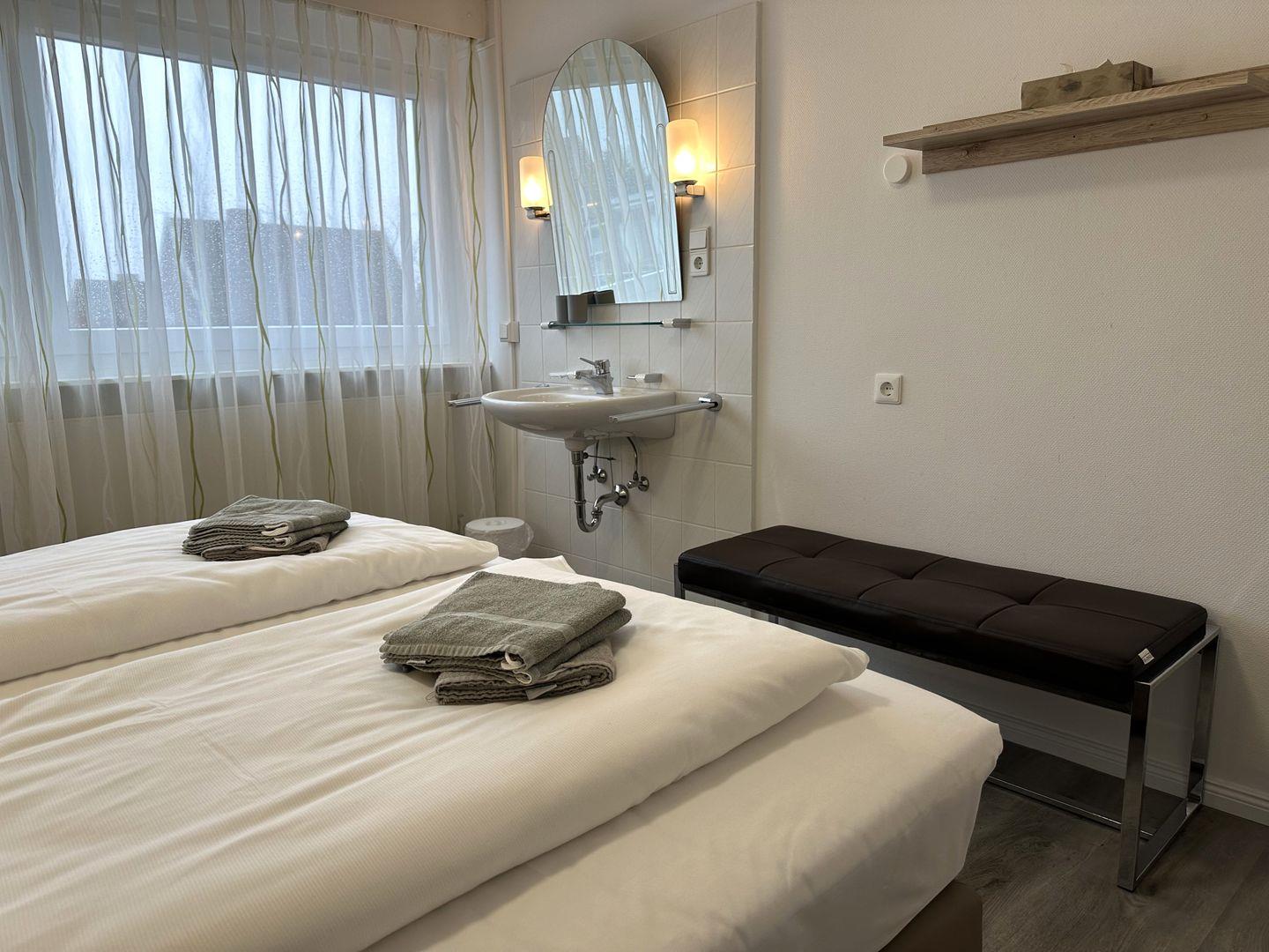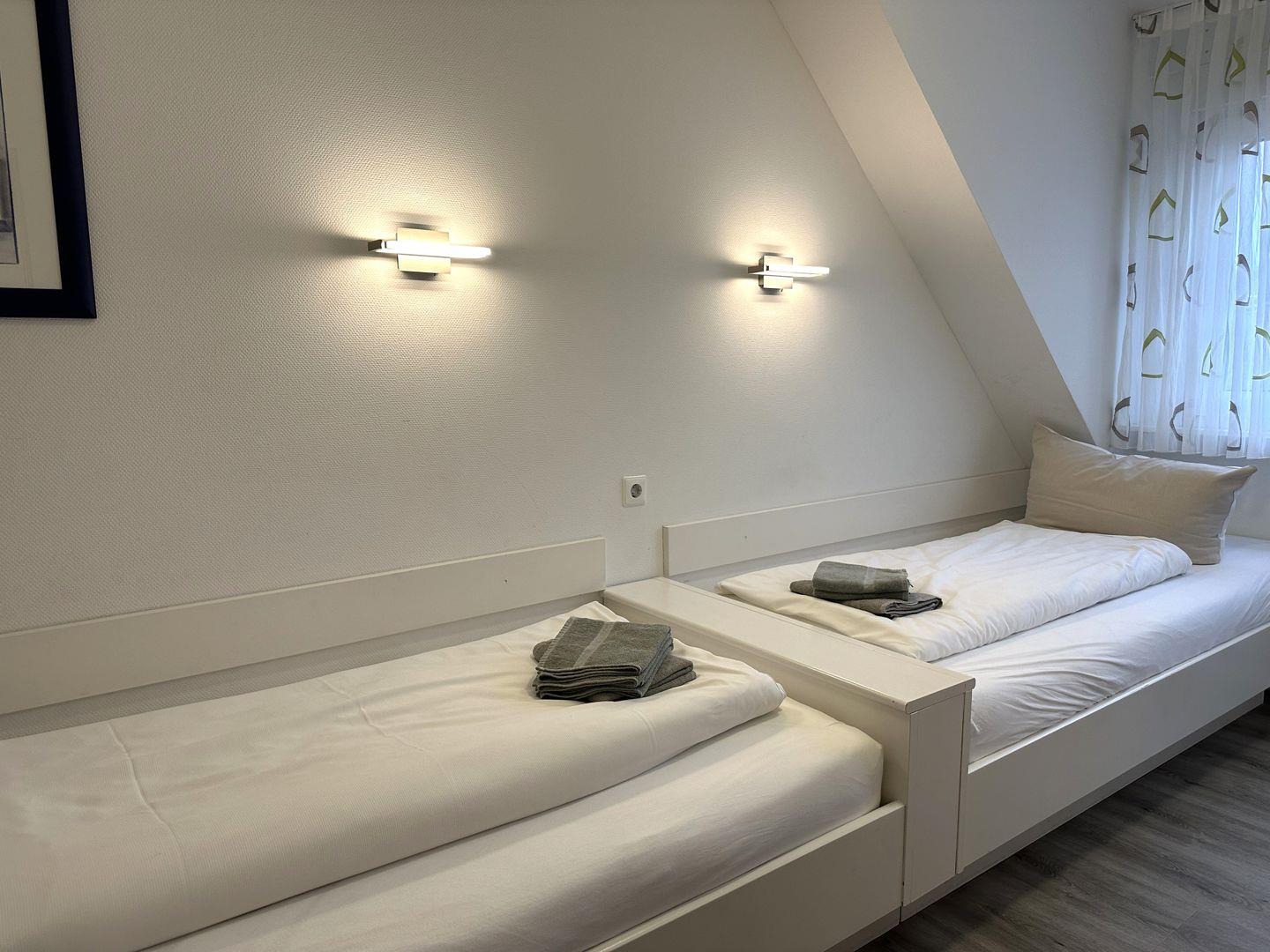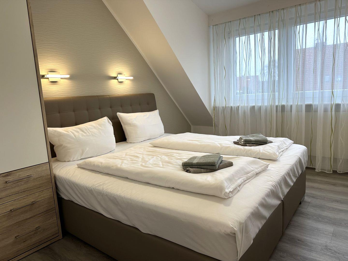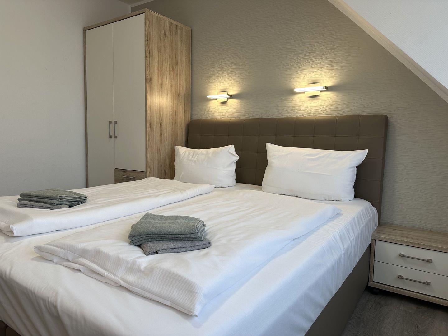 Die 3-Raum-Ferienwohnung (1.OG) verfügt über zwei separate Schlafzimmer (eines mit Doppelbett und eines mit zwei Einzelbetten), einen Wohnraum mit Essbereich (Sofa, Kabel-TV), Küche (mit Standard-Elektrogeräten; Spülmaschine) und Badezimmer mit Dusche/ WC. Vom Wohnraum haben Sie Zugang zum großzügigen Südbalkon. WLAN vorhanden. NICHTRAUCHERWOHNUNG!