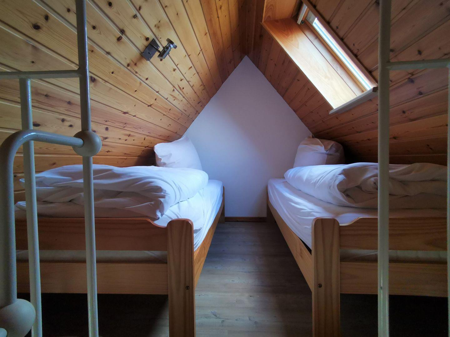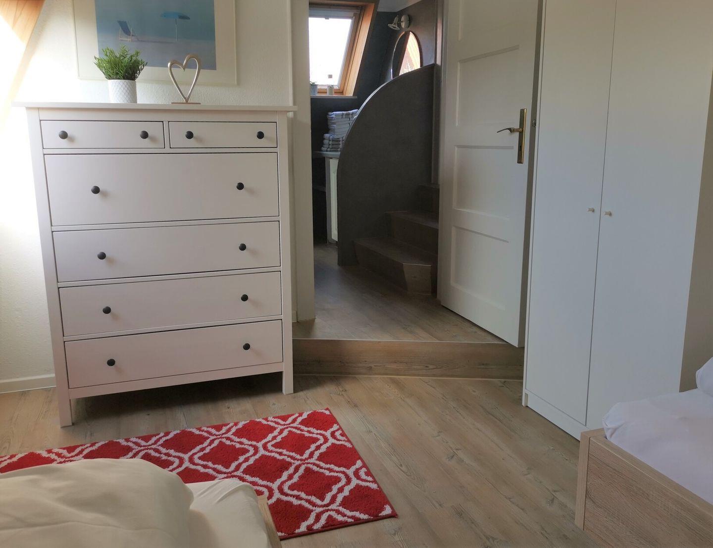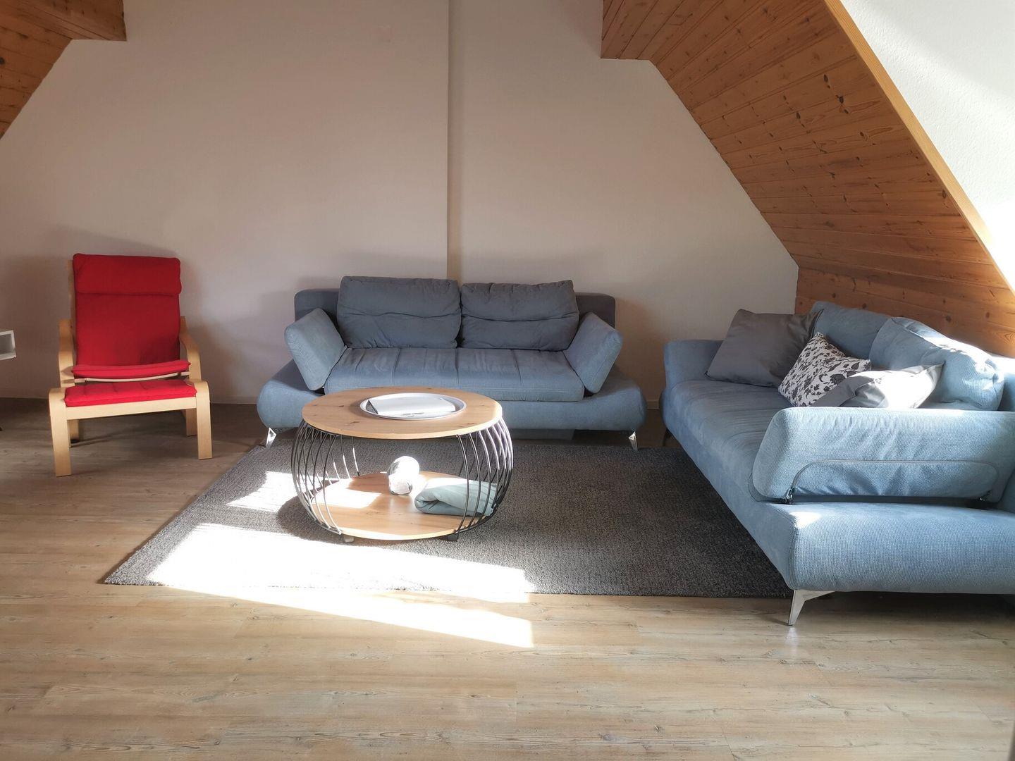 Das renovierte Appartement im Dachgeschoss verfügt über ein separates Schlafzimmer mit zwei Einzelbetten, großzügigen Wohn- und Essbereich (TV) mit offener Empore für zwei Einzelbetten, separate Küche (Backofen, Mikrowelle, 4-Plattenherd, Spülmaschine) sowie Badezimmer mit Dusche/WC. WLAN. NICHTRAUCHERWOHNUNG!
