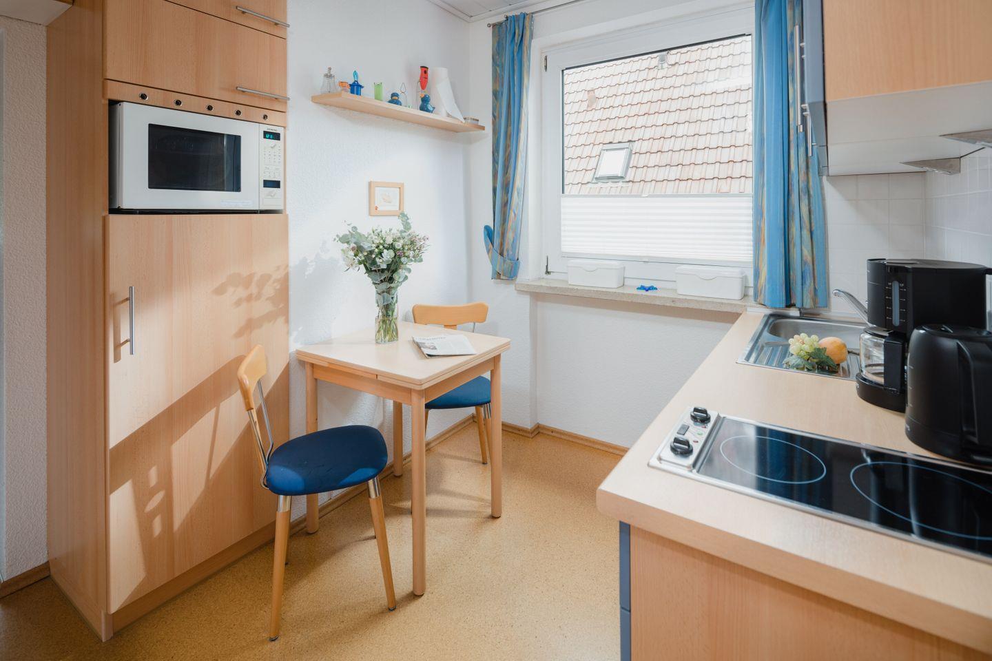 Die kuschelige, zentral gelegene 1-Raum-Ferienwohnung (22qm²) verfügt über einen Wohn-/Schlafraum (TV) mit komfortablem Schlafsofa (140x195cm), separater Küche (2-Platten-Ceranfeld, Mikrowelle) mit Essbereich sowie separates Badezimmer mit Dusche & WC. Über den Hausflur erreichen Sie den wohnungseigenen Süd-Balkon. NICHTRAUCHERWOHNUNG!