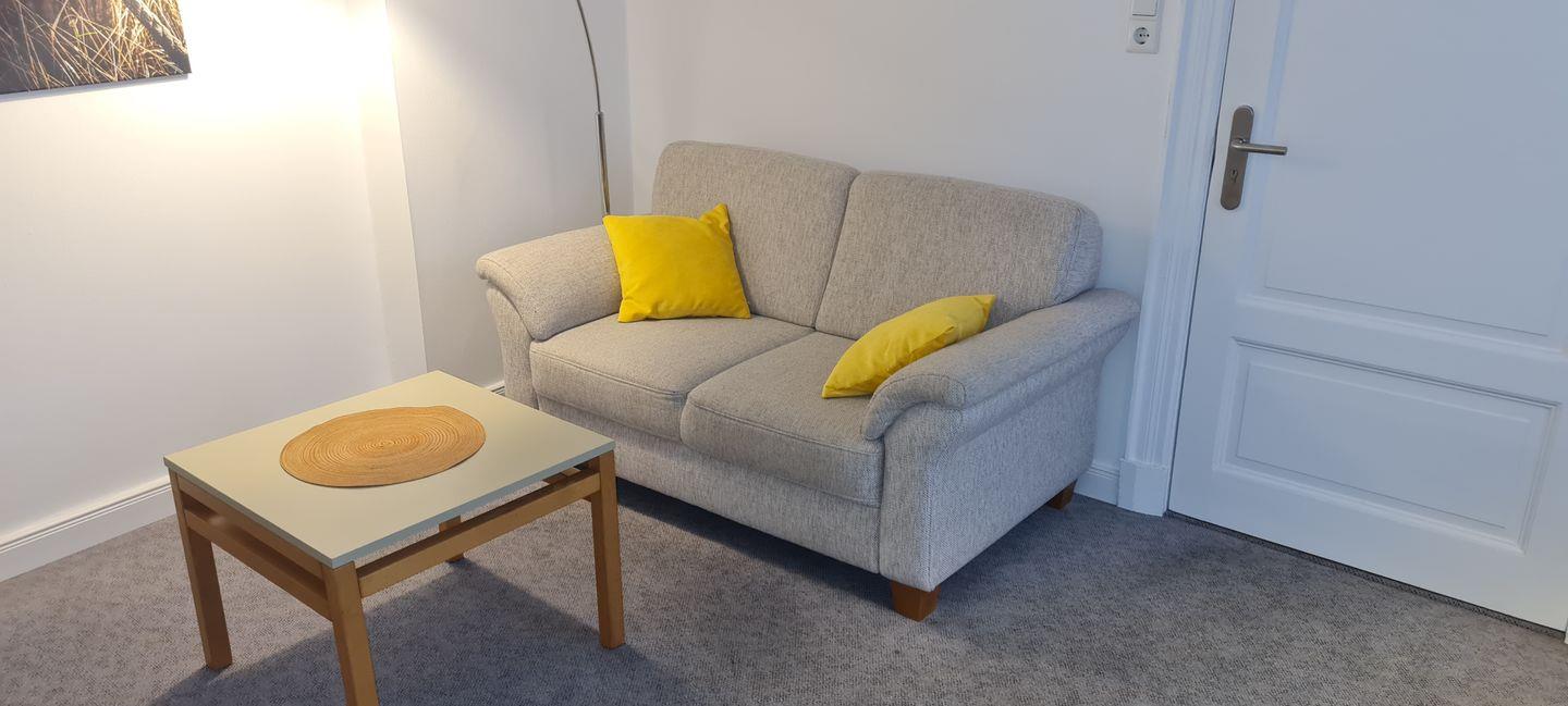 Das 2-Raum-Appartement in der 2. Etage verfügt über ein Wohnzimmer (TV), einer separaten Küche mit Essecke (Spülmaschine, 4-Platten-Ceranfeld). Ein Schlafzimmer mit Doppelbett und Dusche/WC sind vorhanden. Ein Parkplatz kann bei Verfügbarkeit für 2,50 € pro Tag hinzugemietet werden. WLAN vorhanden.
