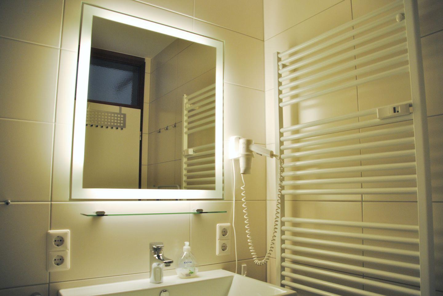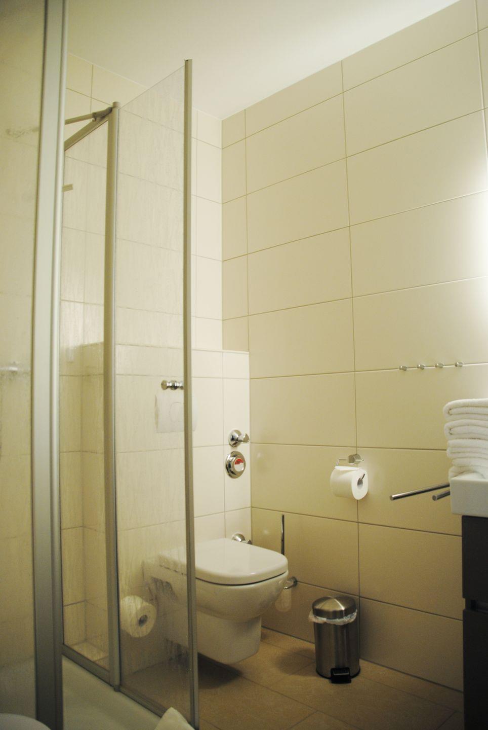 Duschbad mit WC und einem Balkon. Nichtraucherwohnung.