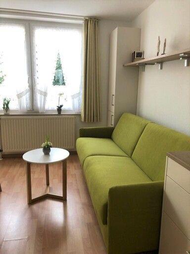Das kleine 1-Raum-Apartment (20qm2) verfügt über einen Wohn-/Schlafraum (Schlafsofa) mit Pentryküche (2-Plattenherd, Kühlschrank) und Essecke sowie Duschbad mit WC. Ein Gemeinschaftlicher Außensitzplatz ist vor dem Haus.