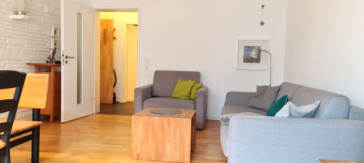 Die zentral in der Winterstraße gelegene 2-Raum-Wohnung besteht aus einem separaten Schlafzimmer mit Doppelbett (zum Hinterhof ausgerichtet), einem Wohn-/Schlafraum mit TV, neuem, hochwertigen Schlafsofa (ausklappbar, 1,60m breit), Essbereich und Zugang zum Balkon sowie einer separaten Küchenzeile und Flur. Sie liegt im 1. Obergeschoss. Kostenfreies WLAN. Bitte beachten Sie, dass es sich um eine Nichtraucherwohnung handelt.