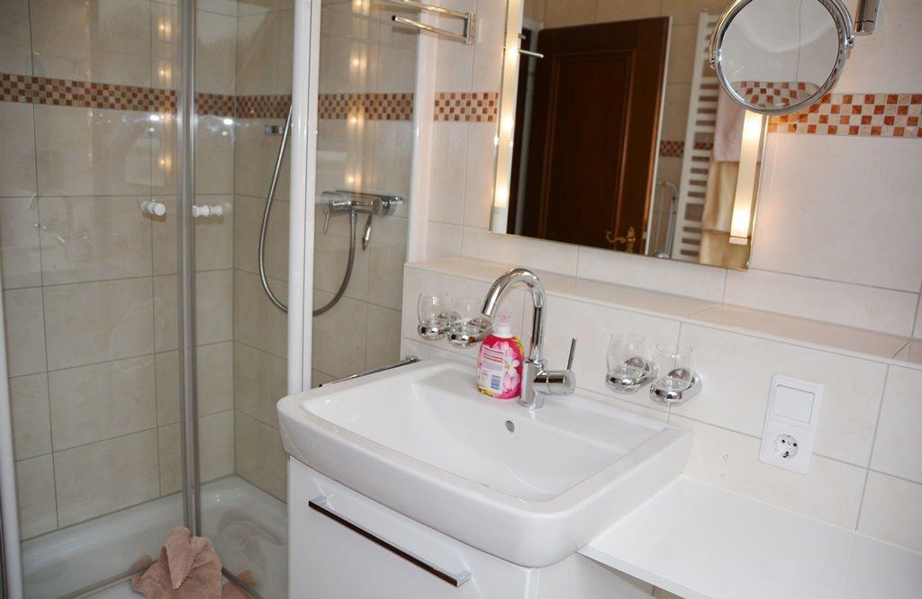 Die 3-Raum-Wohnung in der 1. Etage besteht aus zwei separaten Schlafzimmern mit Doppelbett (in einem davon ist eine Essecke integriert), einem Wohnzimmer mit TV, einer separaten, voll ausgestatteten Küche mit Geschirrspüler, einem renovierten Duschbad mit WC und Balkon. Nichtraucherwohnung.