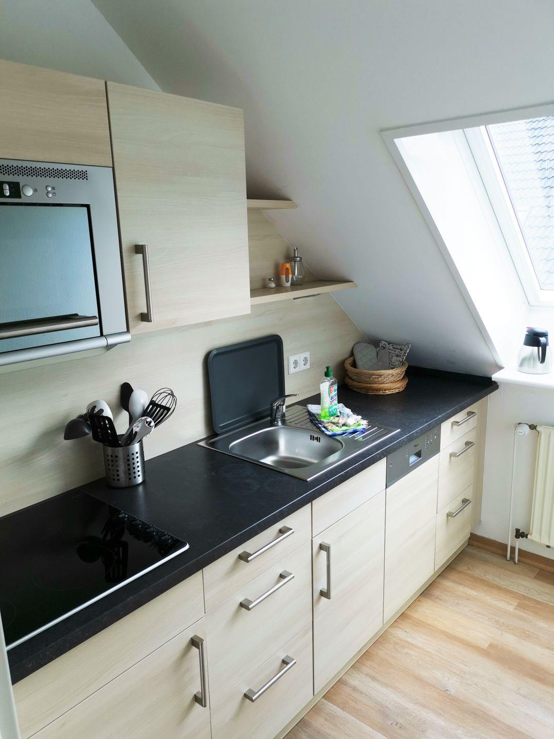 mit TV, einer separaten Kochküche mit Geschirrspüler, einem renovierten Duschbad mit WC und Balkon. Nichtraucherwohnung.