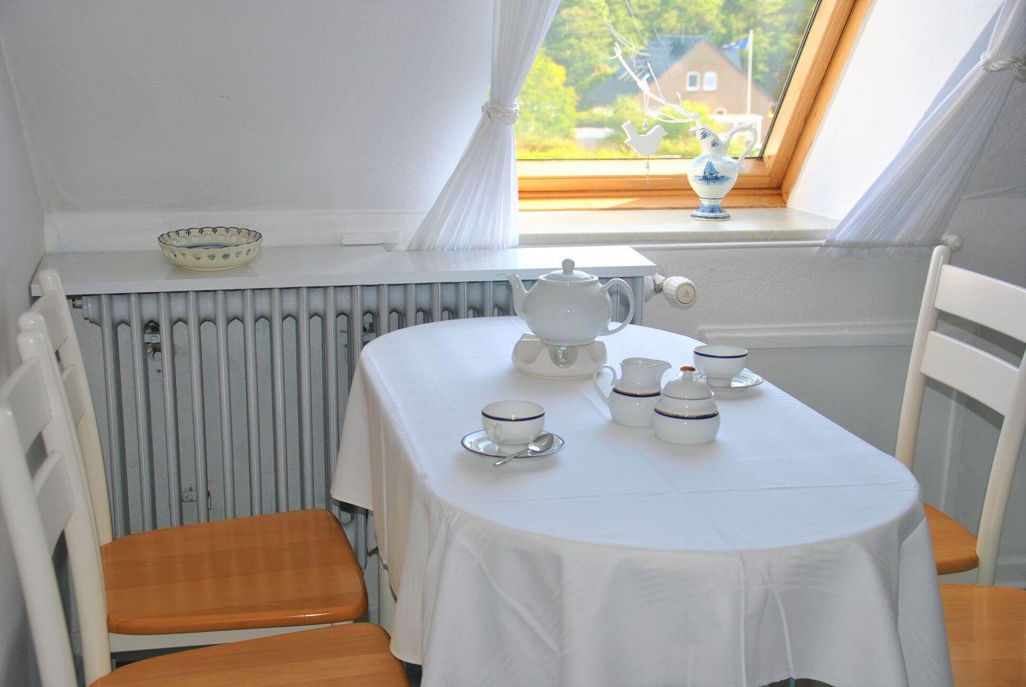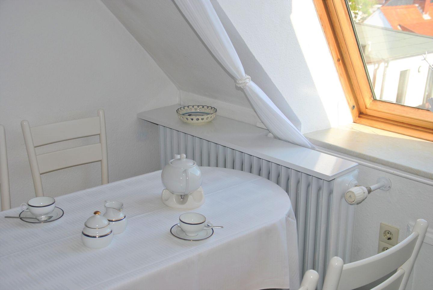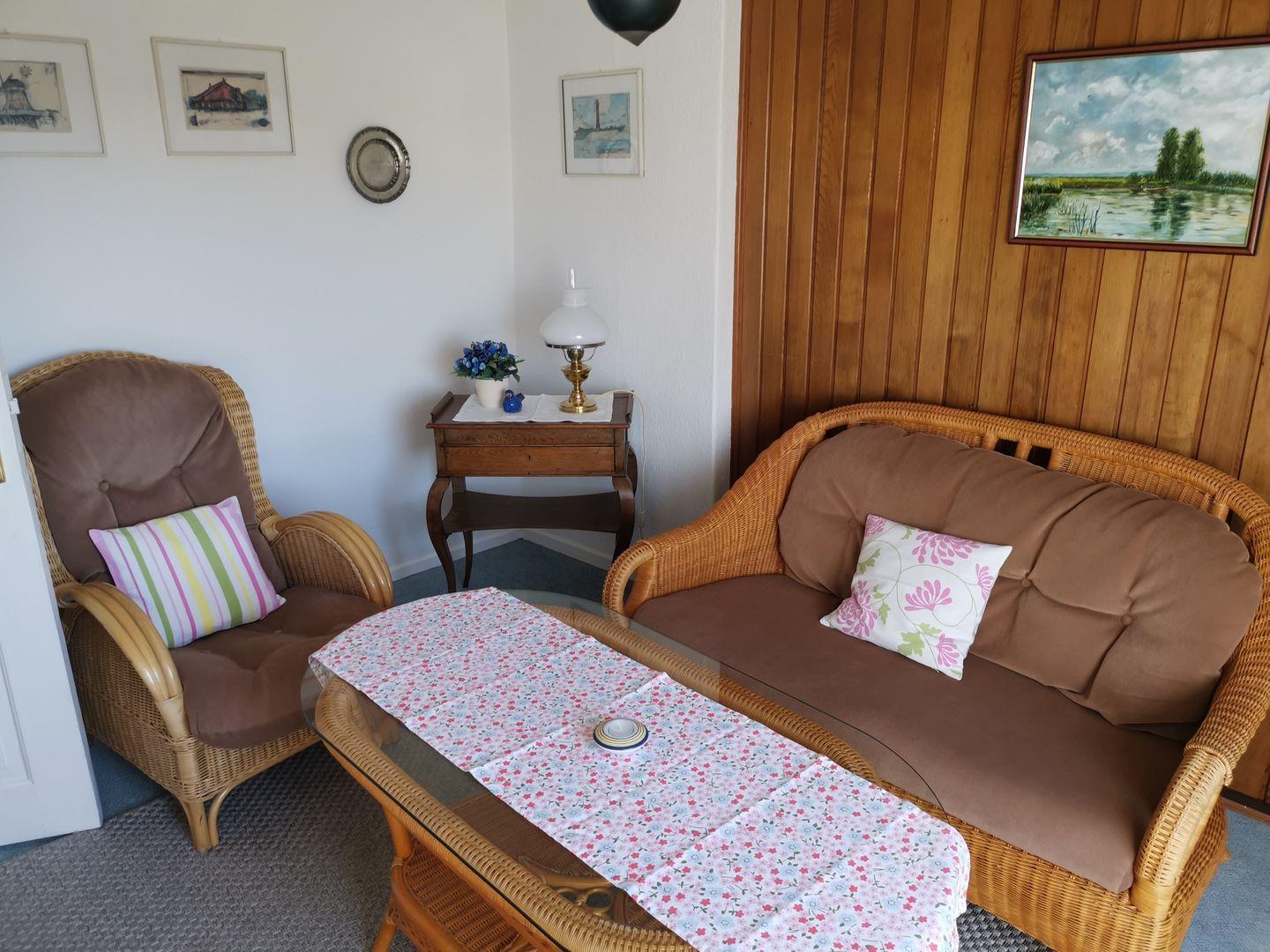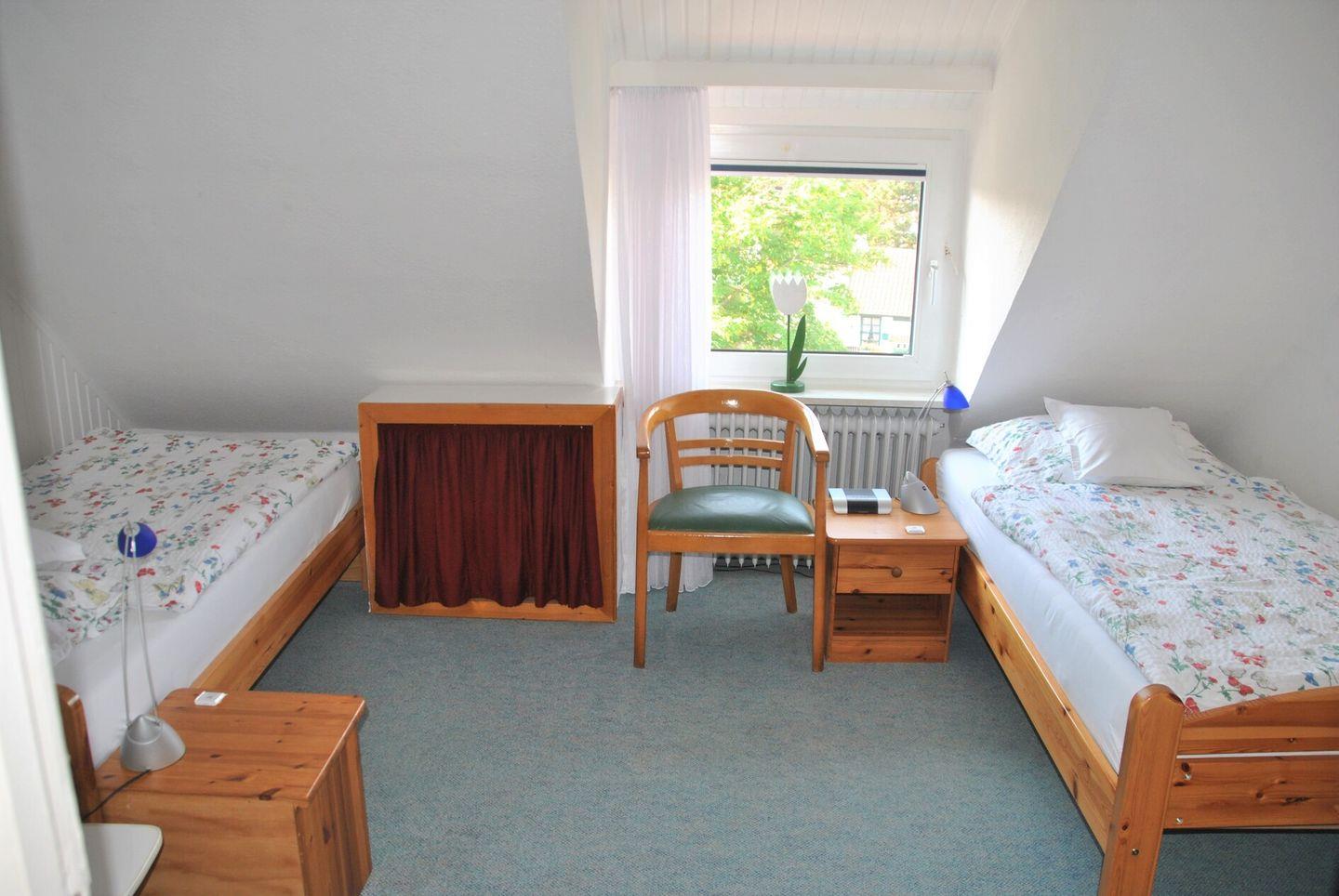 Das gemütliche Appartement im 2. OG verfügt über zwei separate Schlafzimmer mit jeweils zwei Einzelbetten, Küchenzeile mit Essecke, Badezimmer mit Dusche/WC, Wohnraum mit Kabel-TV und Essbereich. WLAN im Haus!