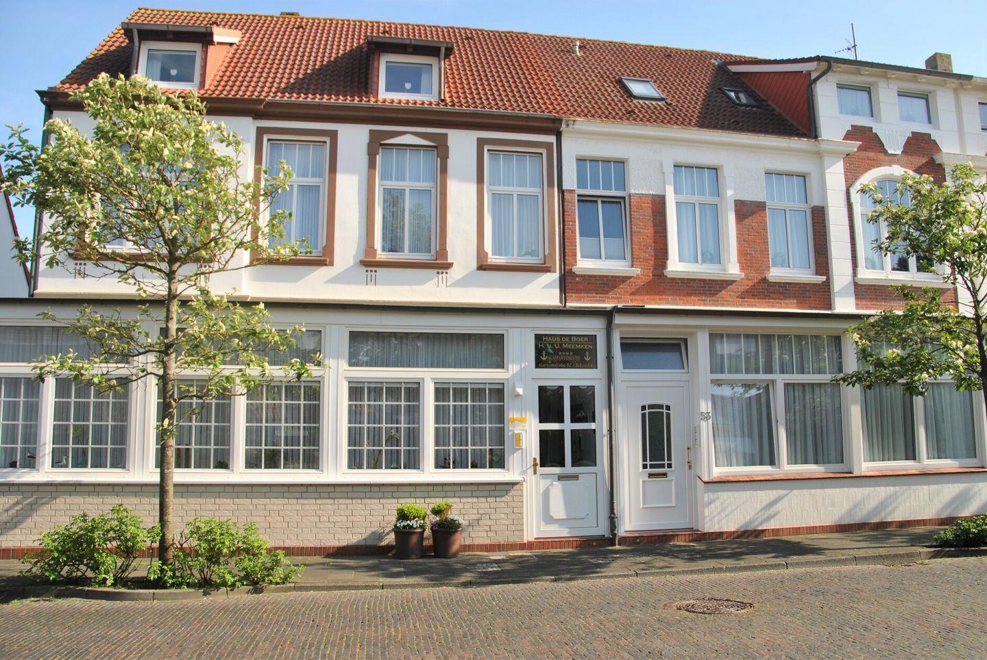 Das Haus de Boer liegt zentral in Norderney in unmittelbarer Nähe zum Rosengarten und zum Kurtheater. Fußläufig erreicht man viele Geschäfte, Restaurants, Cafés und Kneipen sowie das Meerwasserbad mit Thalassozentrum und Sauna.