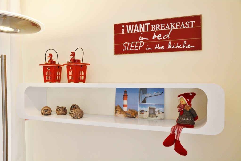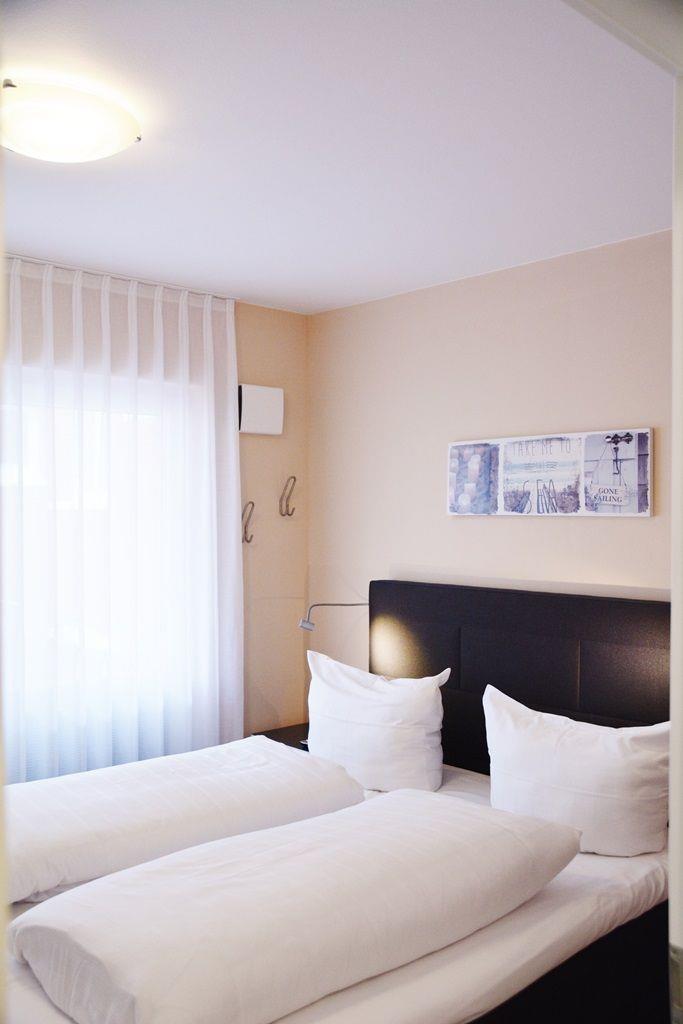 Das Neubau-Appartement besteht aus einem separaten Schlafzimmer mit TV (das Doppelbett ist 1,60m breit), einem Wohnraum (zwei Sessel, TV) mit integrierter