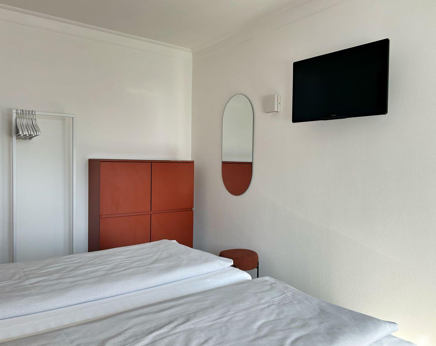 Das 2-Raum-Appartement im 1. OG (DG) besteht aus einem separaten Schlafzimmer mit Doppelbett (TV), einem Wohnzimmer mit Sofa und TV, einer neuen Küchenzeile, einem Duschbad mit WC, Flur sowie zwei Südbalkonen, die jeweils vom Wohn- und Schlafzimmer abgehen. Schlafzimmer, Wohnzimmer und Flur. Ein Schwimmbad im Haus ist kostenlos nutzbar, die Duschen und Umkleiden wurden erst kürzlich saniert. Auch eine Sauna befindet sich im Haus und kann gegen Gebühr (Münzeinwurf) von den Gästen des Hauses genutzt werden. Im Ruheraum können Sie nach dem Schwimmen oder Saunieren pausieren.