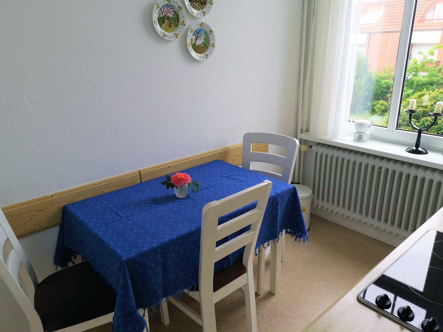 Die gemütliche Wohnung im 1. OG verfügt über ein separates Schlafzimmer mit Doppelbett, separate Küchenzeile (4-Platten-Herd), Dusche/WC und Wohn-/ Schlafraum mit Schlafsofa (90x200cm), Kabel-TV und Essecke. WLAN im Haus!