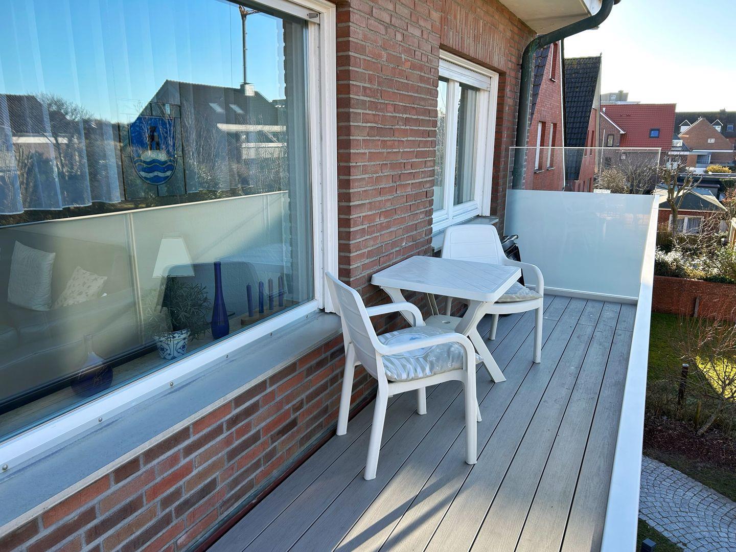 Die komfortable 2-Raum-Wohnung befindet sich in der 1. Etage und besteht aus einem Wohnraum (TV) mit zwei Schrankbetten, einem separaten Schlafzimmer mit Doppelbett, Badezimmer mit Dusche/WC, Küche mit Geschirrspüler, Gefrierfach, Mikrowelle sowie E-Herd mit Backofen und Cerankochfeld. Kostenfreies WLAN ist Vorhanden. Vom Wohnraum haben Sie Zugang zum großen Nordwest-Balkon mit Blick auf die Dünen und hauseigene Grünanlagen, der viele Möglichkeiten für gemütliche Stunden bietet. NICHTRAUCHERWOHNUNG.