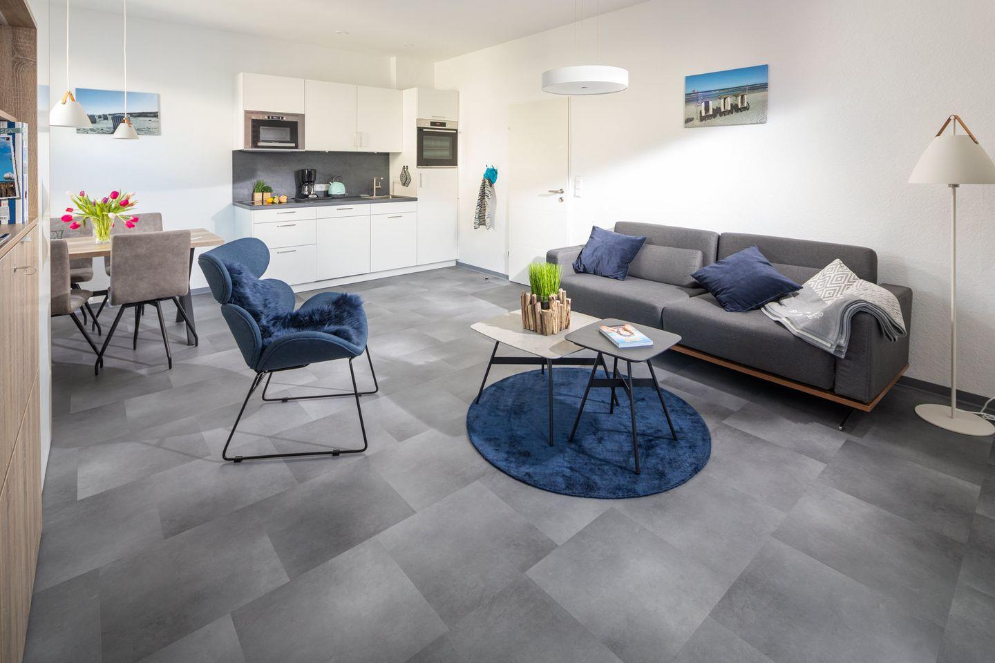 Sie verfügt über ein Schlafzimmer mit Doppelbett (180x200cm), ein Wohnzimmer mit integriertem Küchenbereich und Schlafcouch (TV, Radio) und ein Tageslichtbad (Föhn). Auch ein Reisebett und ein Hochstuhl stellen wir für die kleinen Gäste gern kostenlos zur Verfügung.