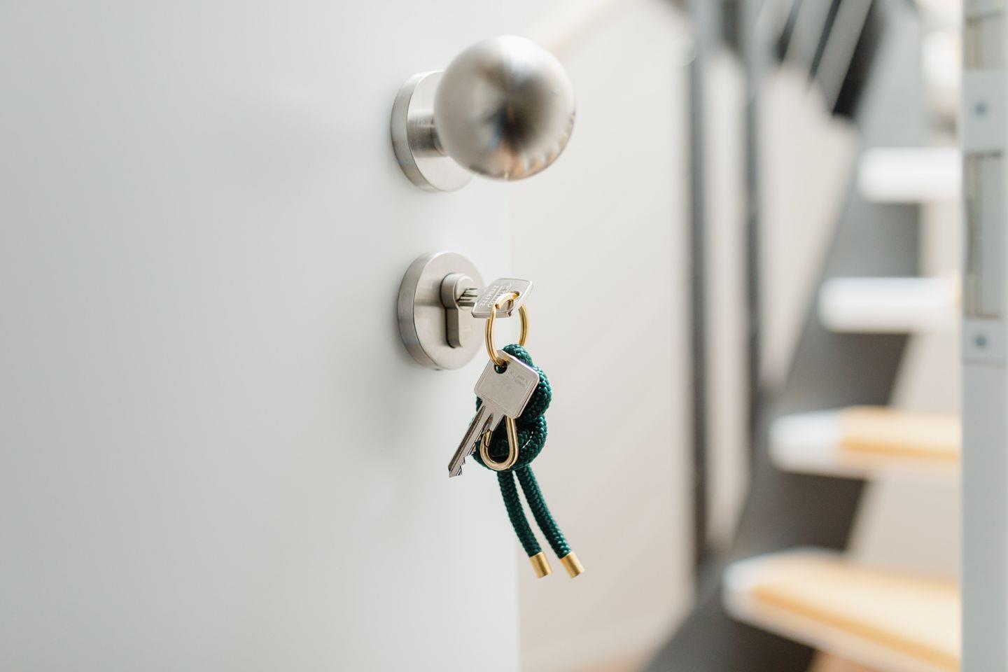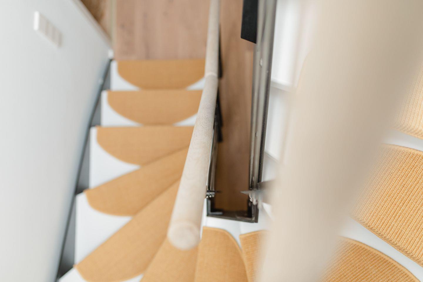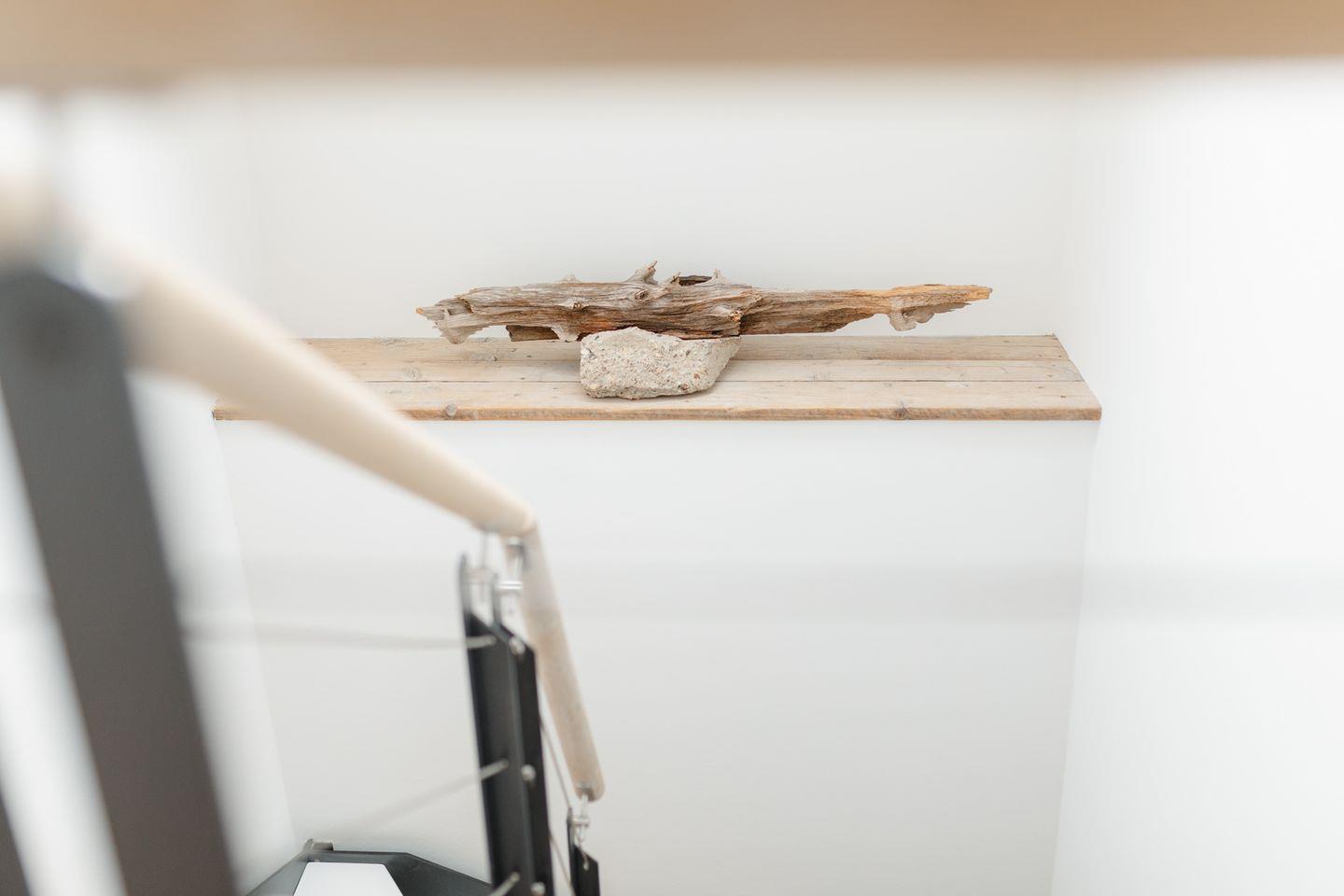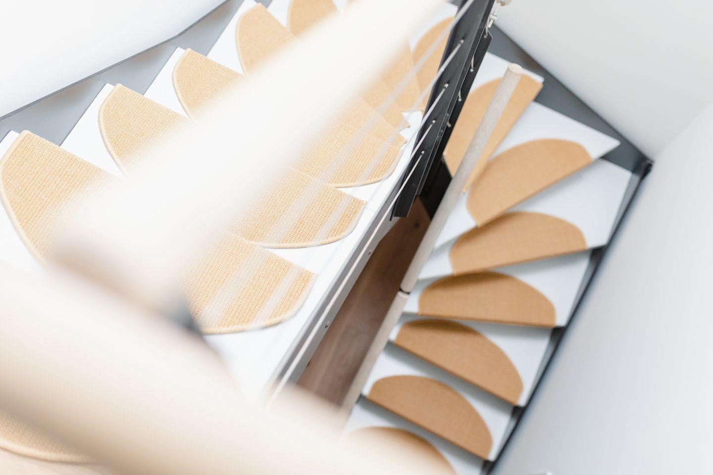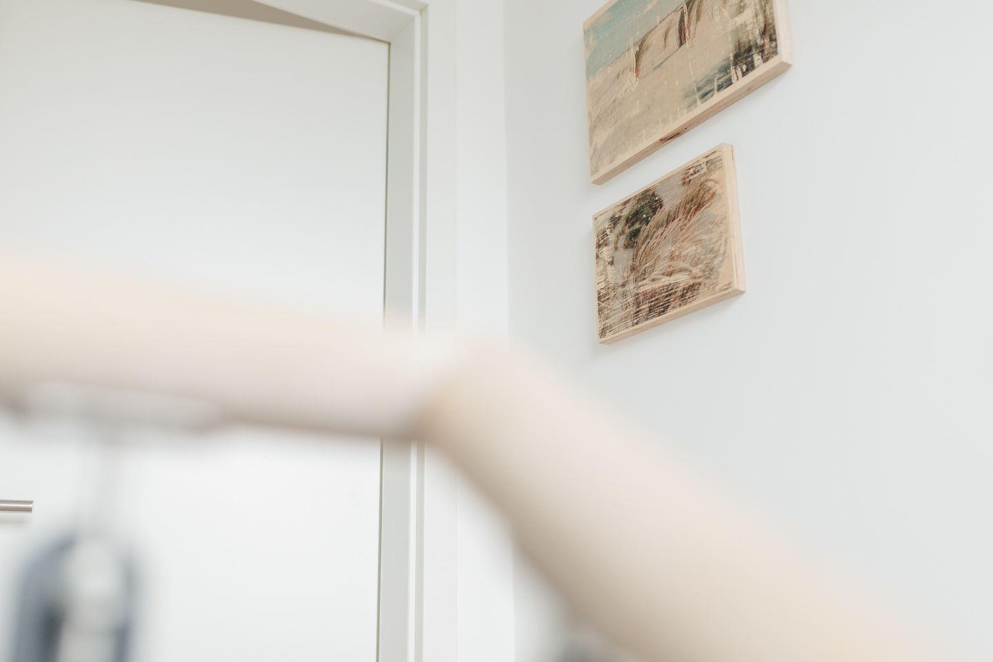 Der Eingang zur Lüttje Tide liegt im unteren Bereich des Hauses und führt über eine helle, modern gestaltete Treppe ins Dachgeschoss. Der Eingangsbereich ist übersichtlich gehalten und bietet Platz für Jacken, Schuhe und Taschen. Alles wirkt stimmig und fügt sich in das Gesamtbild der Wohnung ein.