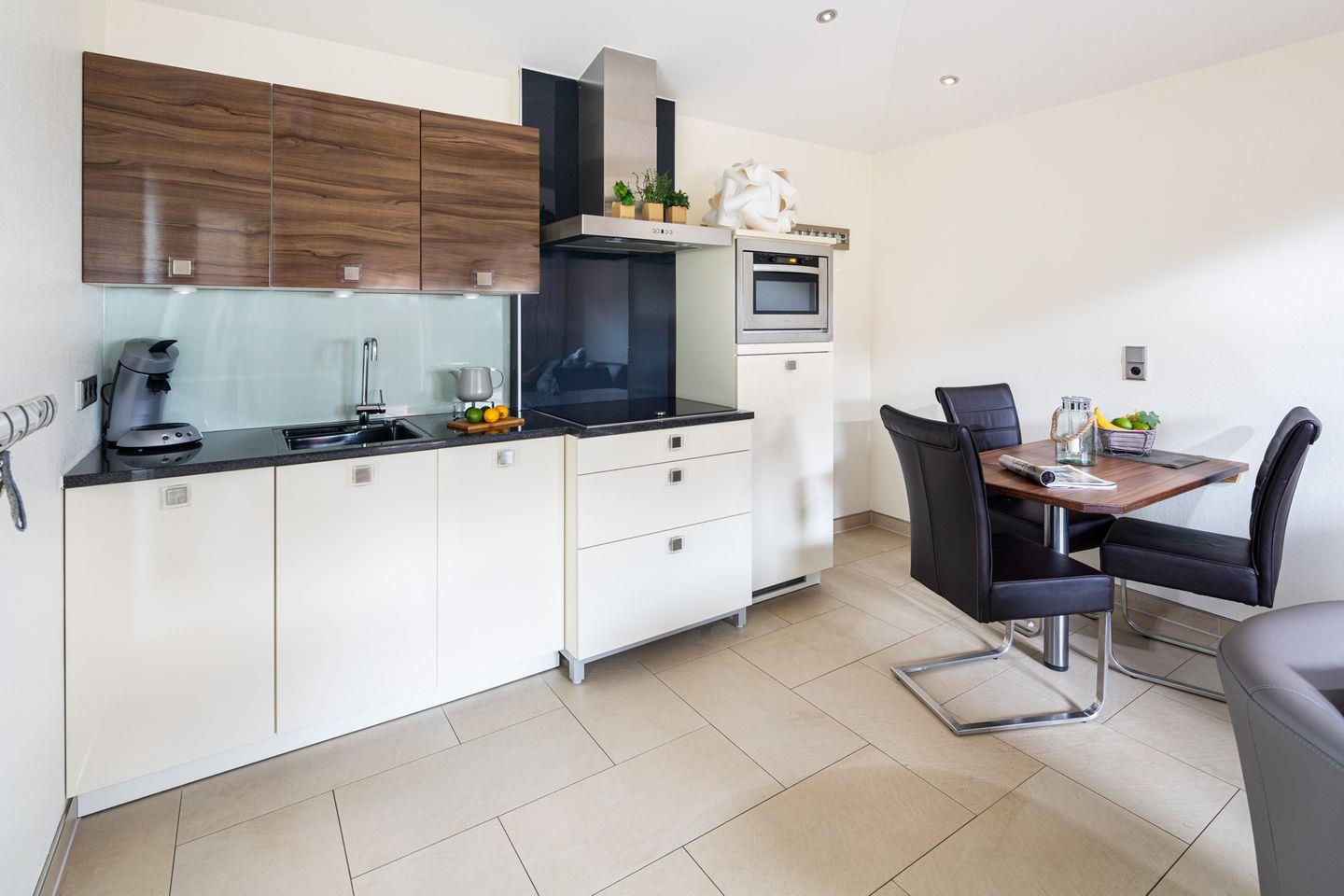 Neben dem Essbereich verfügt die Wohnung über eine gut ausgestattete Küche mit einem Ceran-Kochfeld,Backofen, Geschirrspüler, Toaster, Wasserkocher, einer Senseo-Kaffeemaschine sowie einer Kaffeefiltermaschine und einem Kühlschrank. Im Schlafzimmer befindet sich ein Doppelbett (180×200cm) mit Smart-TV. Auch ein Reisebett und ein Hochstuhl stellen wir für die kleinen Gäste gern kostenlos zur Verfügung. Die kleine Terrasse ist ganz alleine für Sie da. Ob Frühstück oder ein Glas Wein am Abend nur einen Schritt zur Tür raus und schon sitzen Sie im freien. Das Bad ist mit einer Dusche, einem WC und Fön ausgestattet. Hunde sind bei uns nach Absprache herzlich willkommen.