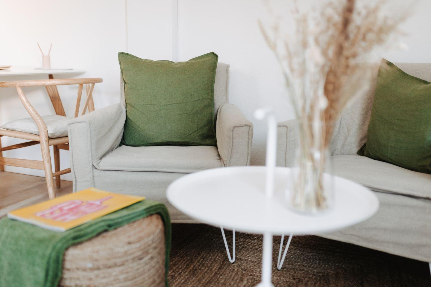 Die offene Küche ist ausgestattet mit einem Kühlschrank, Gefrierfach, Mikrowelle, Ceranfeld (2 Kochfelder), Kaffeemaschine und einer Nespresso-Kapselmaschine, um Ihren Aufenthalt so angenehm wie möglich zu gestalten. Die Sitzecke bestehend aus 2 Sesseln und Fernseher lädt zu gemütlichen Abenden ein.