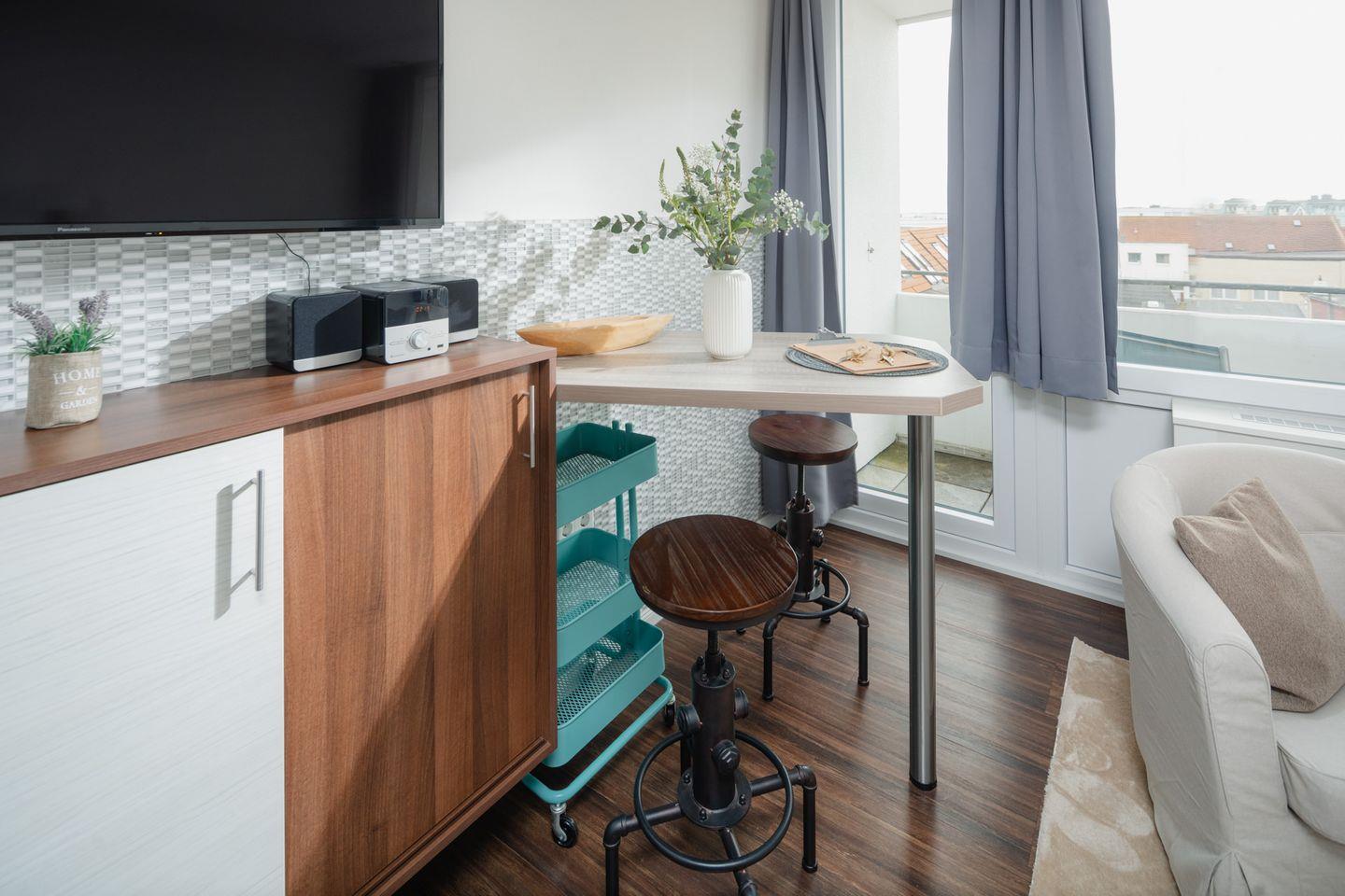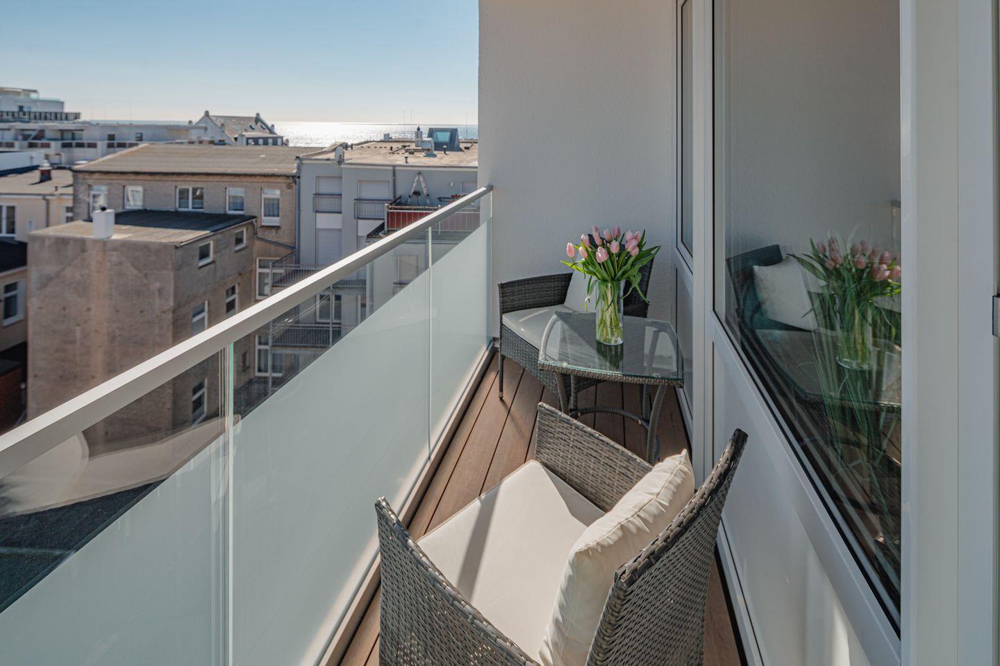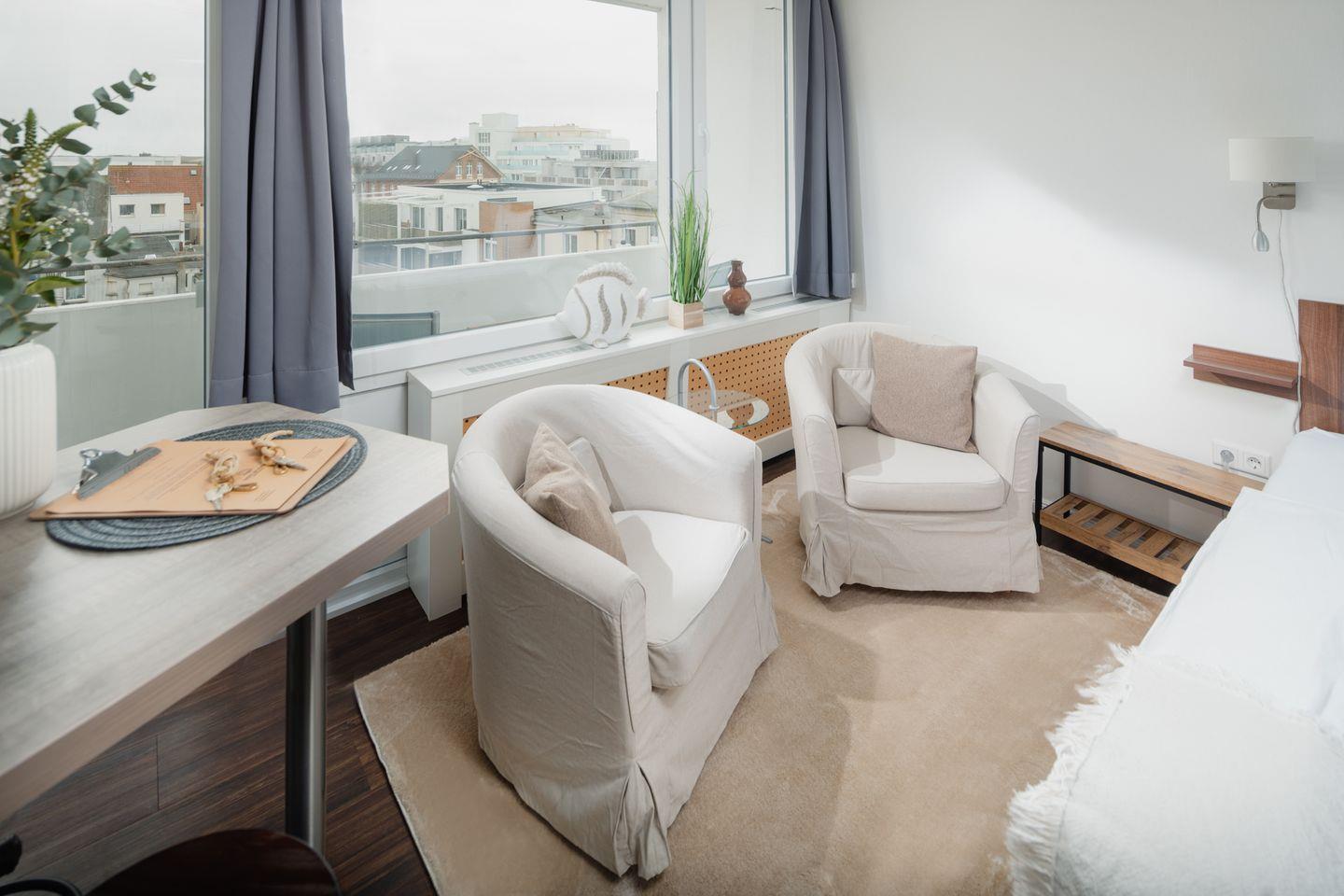 Hoch hinaus, im 5. Stock, liegt das Einraumappartment "Lüttje Leevke"