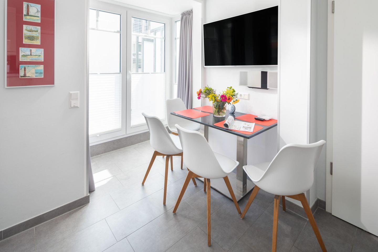 Die Wohnung 2 im Haus Residenz Windjammer bietet alles was Sie für Ihren Urlaub brauchen. Auf großzügigen 52qm, aufgeteilt in 3 Räumen, lässt sich der perfekte Urlaub zu zweit, dritt oder zu viert verbringen. Auch Ihr Vierbeiner darf mit in den Urlaub.