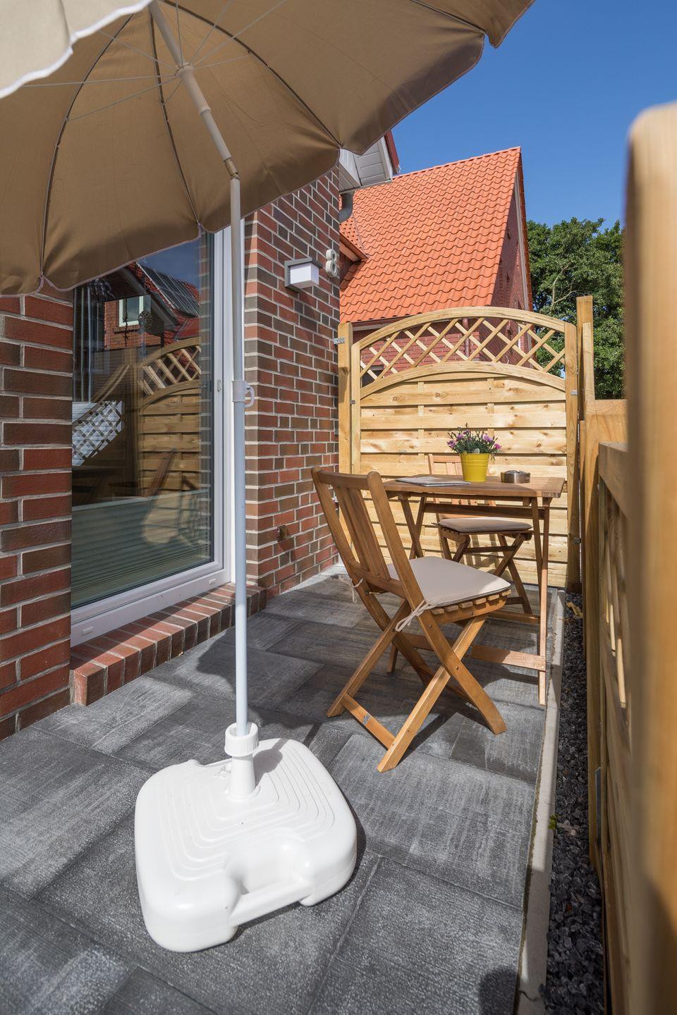 Genießen Sie die Sonnenstrahlen auf Ihrer eigenen Terrasse, die zum Verweilen und Entspannen einlädt. Hier können Sie das Frühstück im Freien genießen oder einfach nur die Seele baumeln lassen. Zudem sind Sie in der Nähe zahlreicher Freizeitmöglichkeiten. Egal ob Radfahren, Wandern, Kitesurfen oder Minigolf spielen – für jeden Geschmack ist etwas dabei.