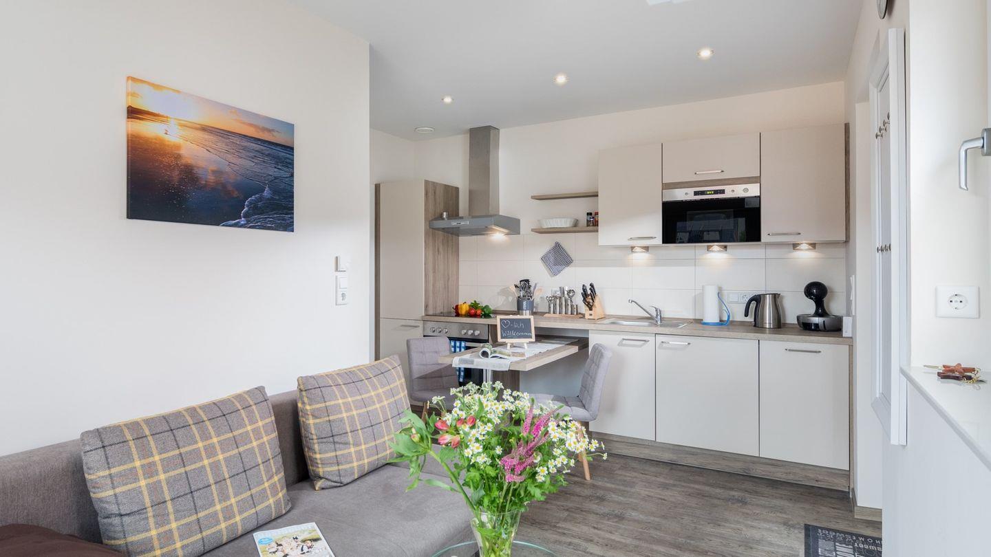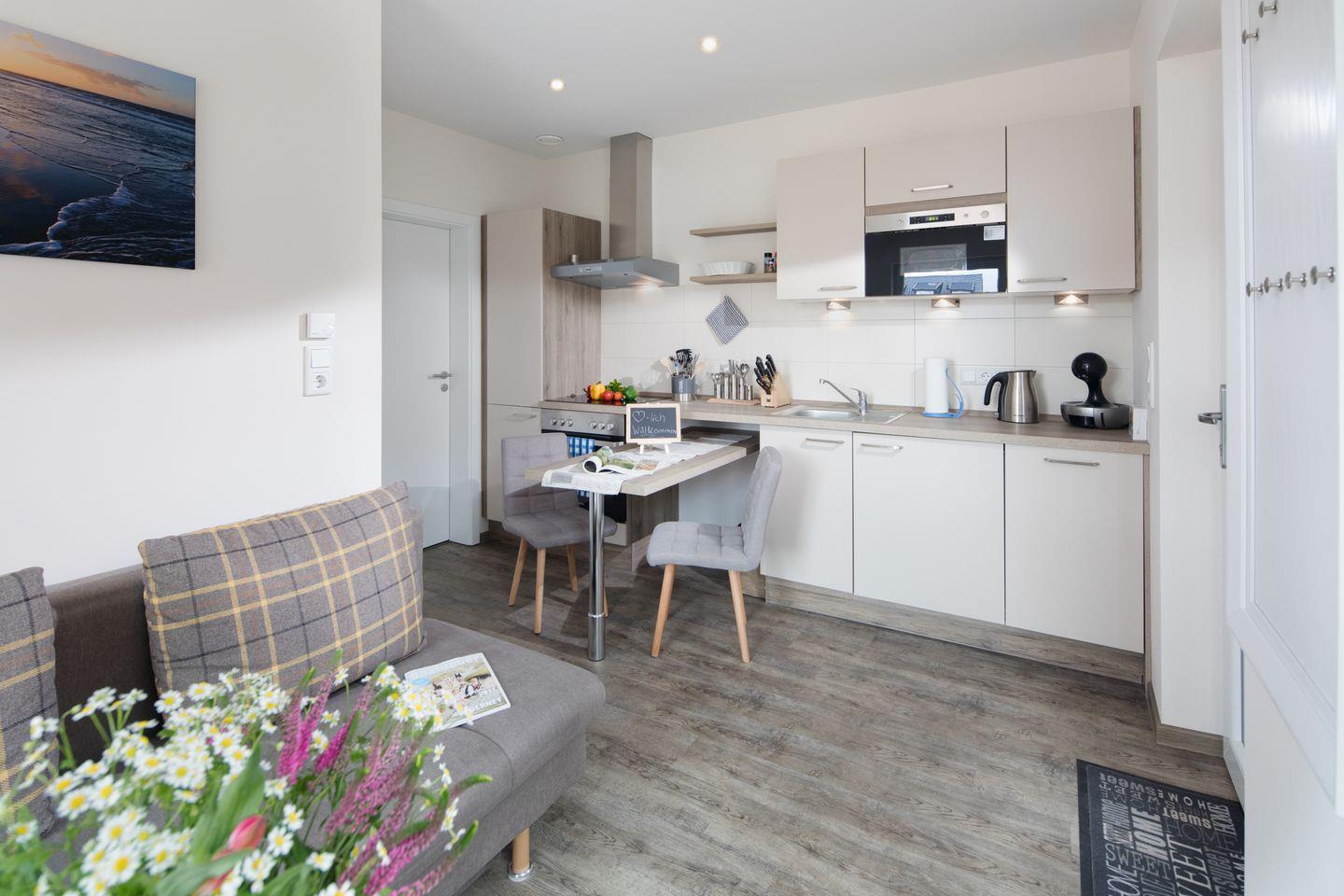 Die Wohnung erstreckt sich über 25 m² und ist ideal für bis zu zwei Personen. Ausgestattet mit einem einladenden Schlafzimmer, einem modernen Badezimmer mit Dusche sowie einer offenen Küche, die zum Wohnzimmer übergeht, bietet sie viel Raum zum Entspannen und Wohlfühlen. Die durchgehende Fußbodenheizung sorgt auch in kälteren Monaten für ein warmes, angenehmes Ambiente. Im Wohnzimmer finden Sie ein bequemes Sofa, auf dem Sie sich nach einem langen Tag am Strand ausruhen können, sowie moderne Unterhaltungsangebote wie einen 43-Zoll-Fernseher mit digitalem Anschluss, einen DVD-Spieler und eine Spielekonsole.